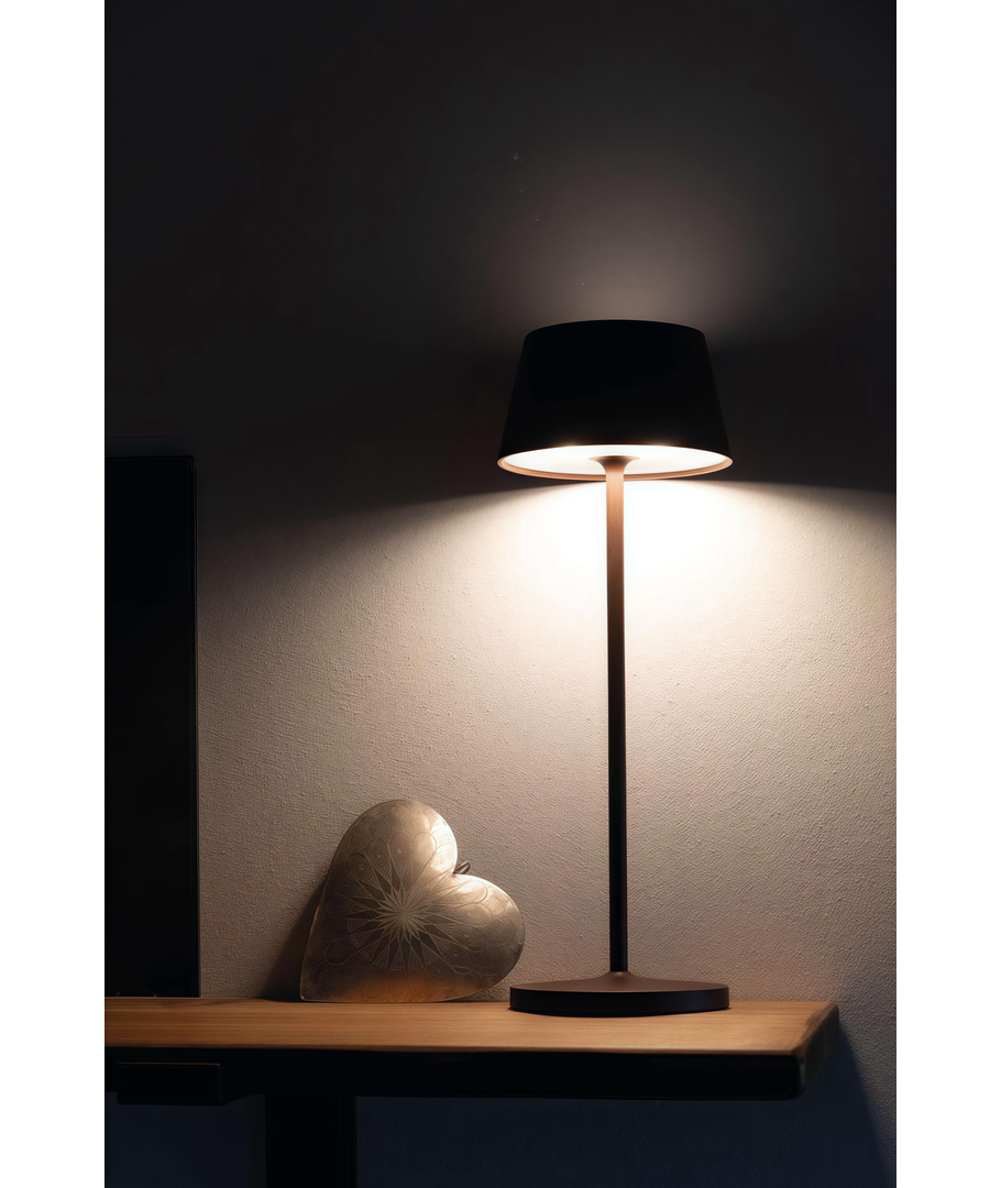 Denna eleganta och funktionella LED-bordslampa erbjuder en uppladdningsbar och dimbar ljuslösning för alla dina behov. Med en smakfull brun finish och stilren design passar den perfekt i alla moderna inredningar.