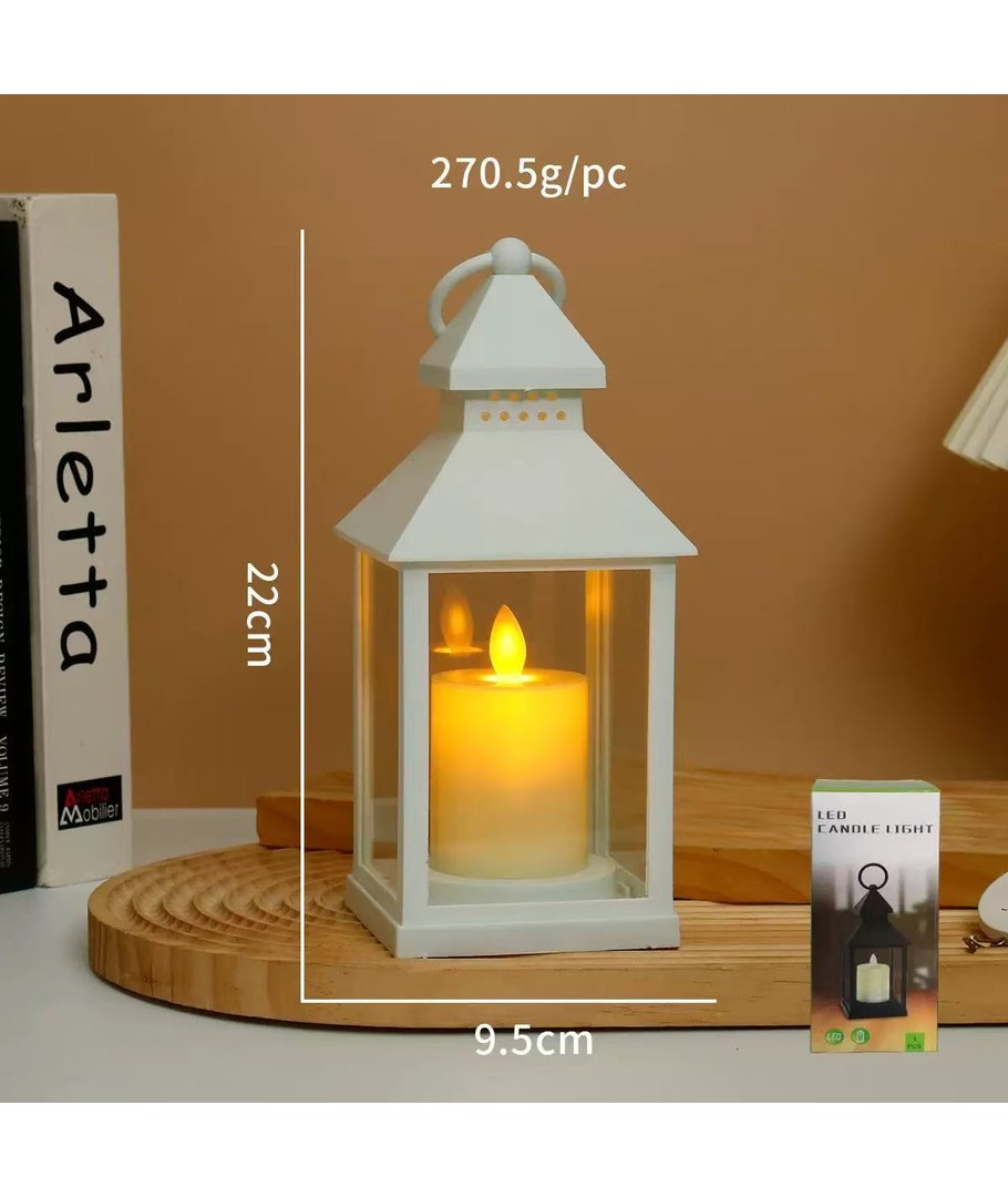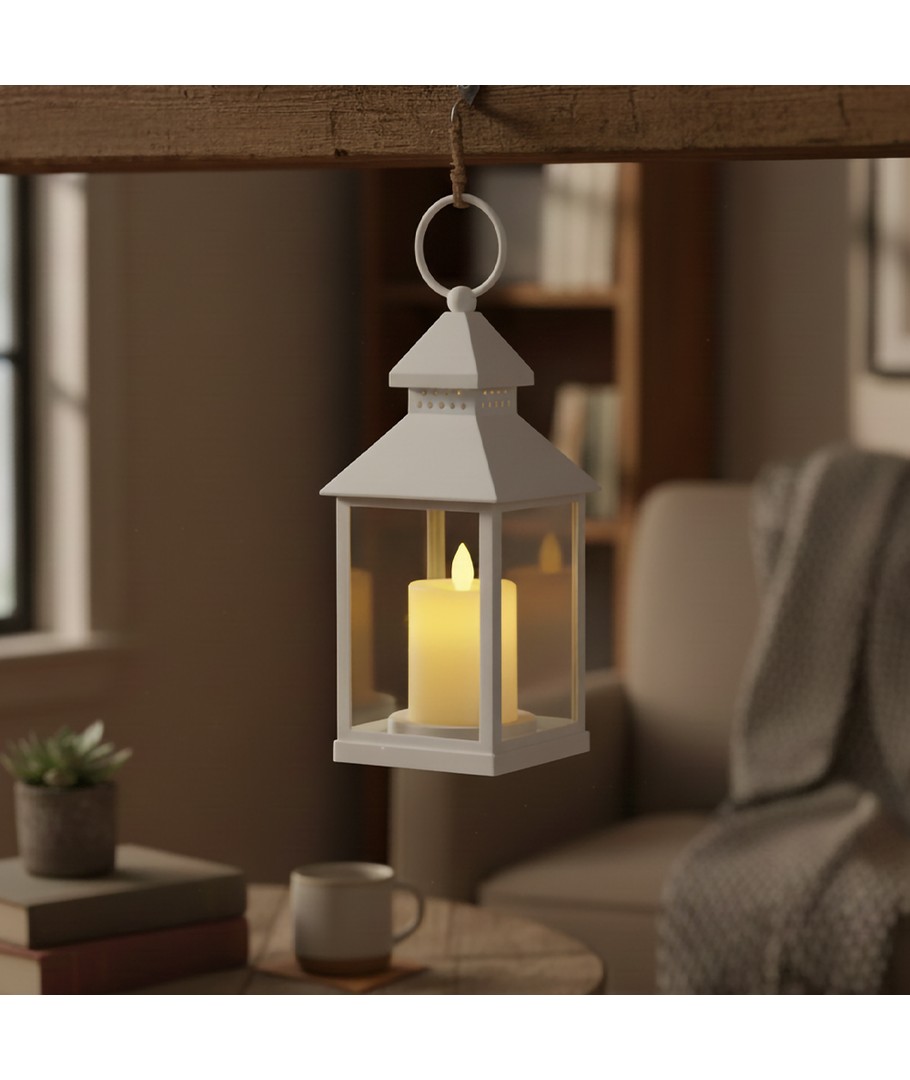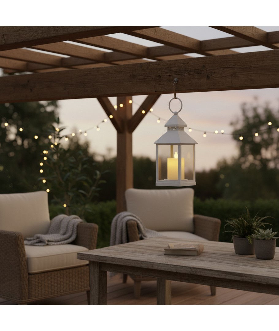 LED-lykta med flameffekt i vitt för både inomhus- och utomhusbruk.