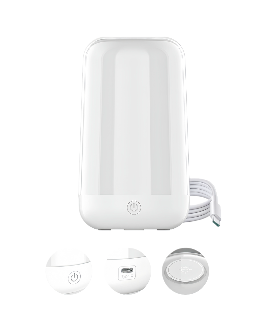 Designen är genomtänkt och kompakt, med dimensionerna 170 x Ø97 mm, vilket gör den perfekt för både nattduksbord och skrivbord. Det integrerade ljuskällan innebär att du slipper byta glödlampor – allt du behöver är att ladda den vid behov.