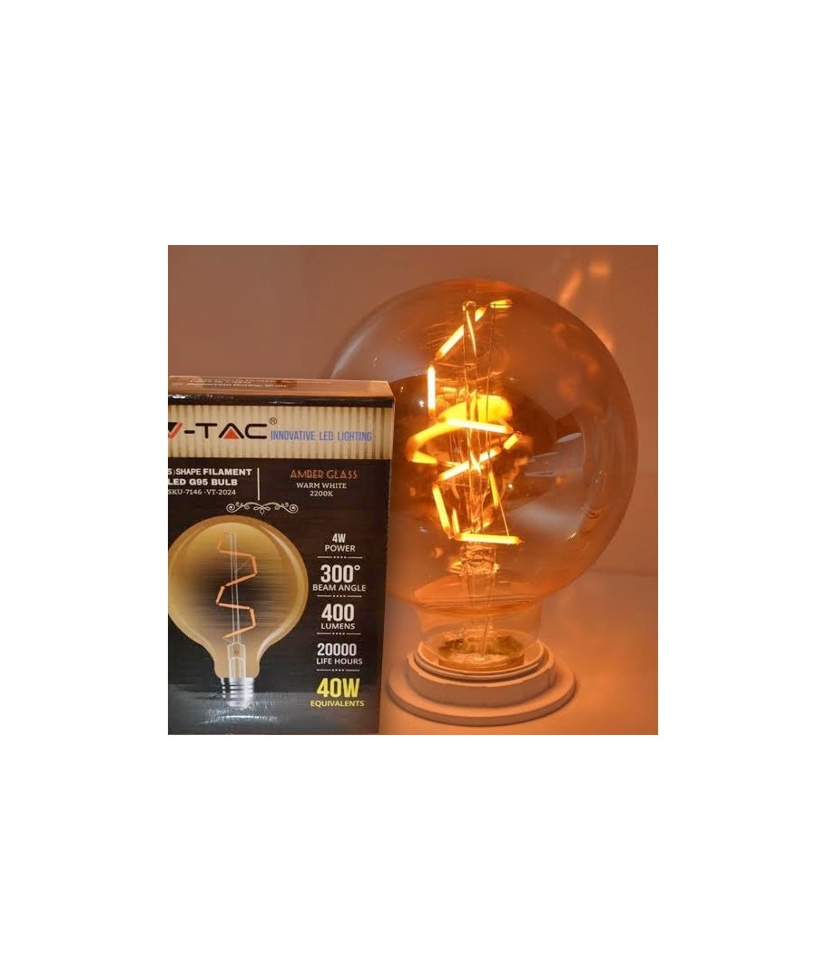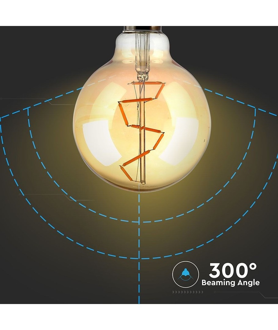 Lampan avger ett extra varm vitt ljus på 2200K, vilket skapar en mysig atmosfär likt de gammaldags glödtrådslamporna. Ljuset sprider sig 360 grader vilket ger en jämn och effektiv belysning i hela rummet med en ljusstyrka på 400 lm.