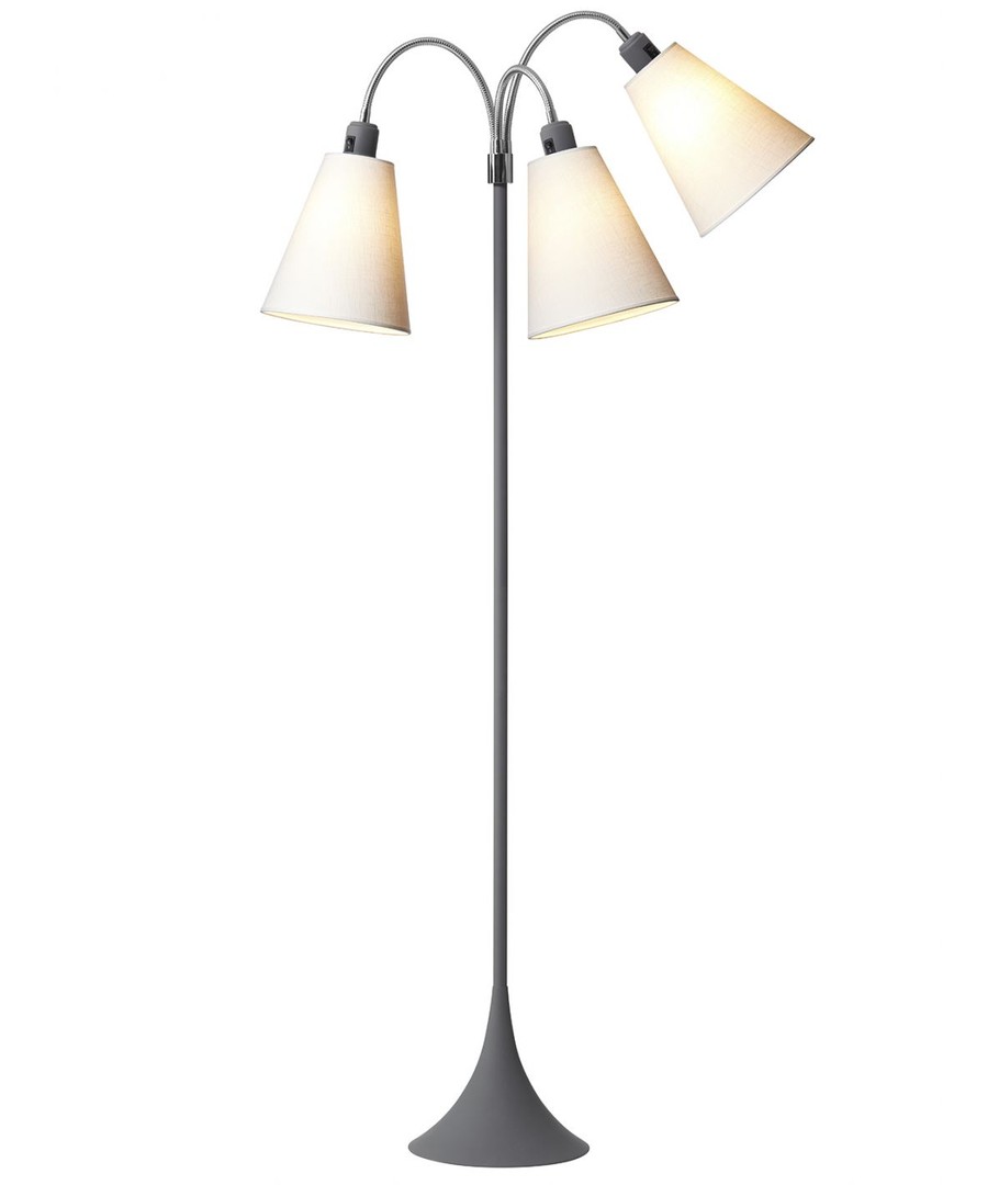Golvlampa från Nielsen Light med 3 flexibla halsar i krom, vilket gör den lättanvänd för läsning och annat.