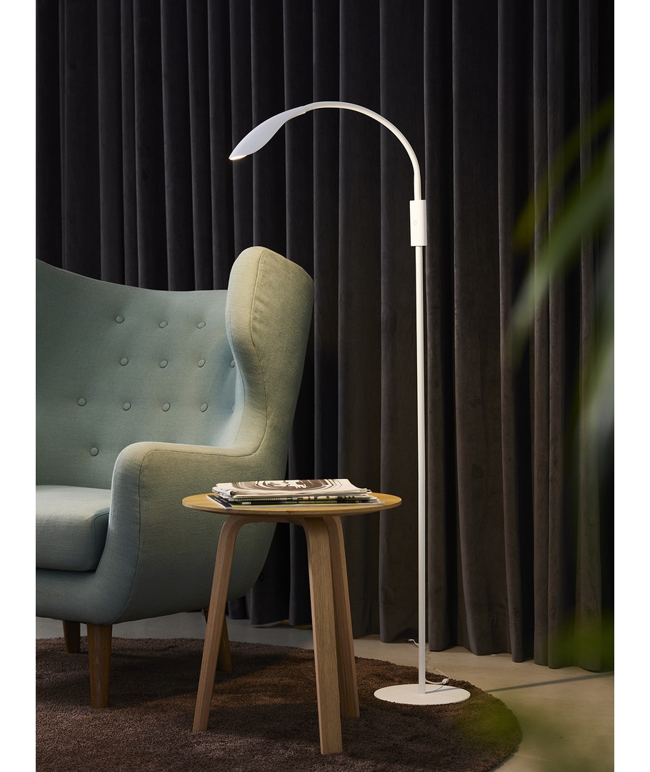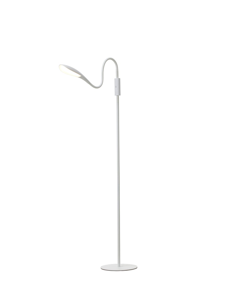 Vit LED golvlampa från Nielsen Light med namnet Mamba i en unik design. Lampan har inbyggd Touch dimmer på själva stången, vilket gör den enkel att använda. På/av finns i samma strömbrytare som dimmern.