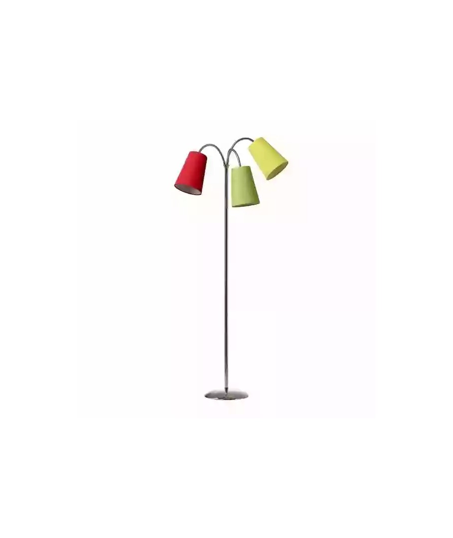 Salsa Golvlampa från danska Nielsen Light med trafikljusfärger är en trendig och praktisk lampa. Var och en av de tre lampskärmarna är monterad på flexibla armar. Fot och armar är i krom.