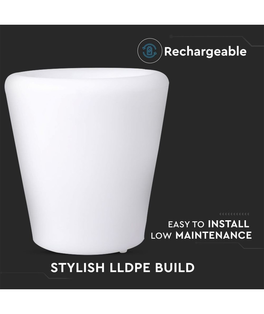 Fördjupa ditt heminredningsspel med en innovativ och stämningsfull belysningslösning som kombinerar estetik med funktionalitet. V-Tac RGB LED blomkruka är inte bara en vanlig blomkruka; det är en dekorativ enhet som ger liv till dina växter med färgglad belysning och en magisk atmosfär.