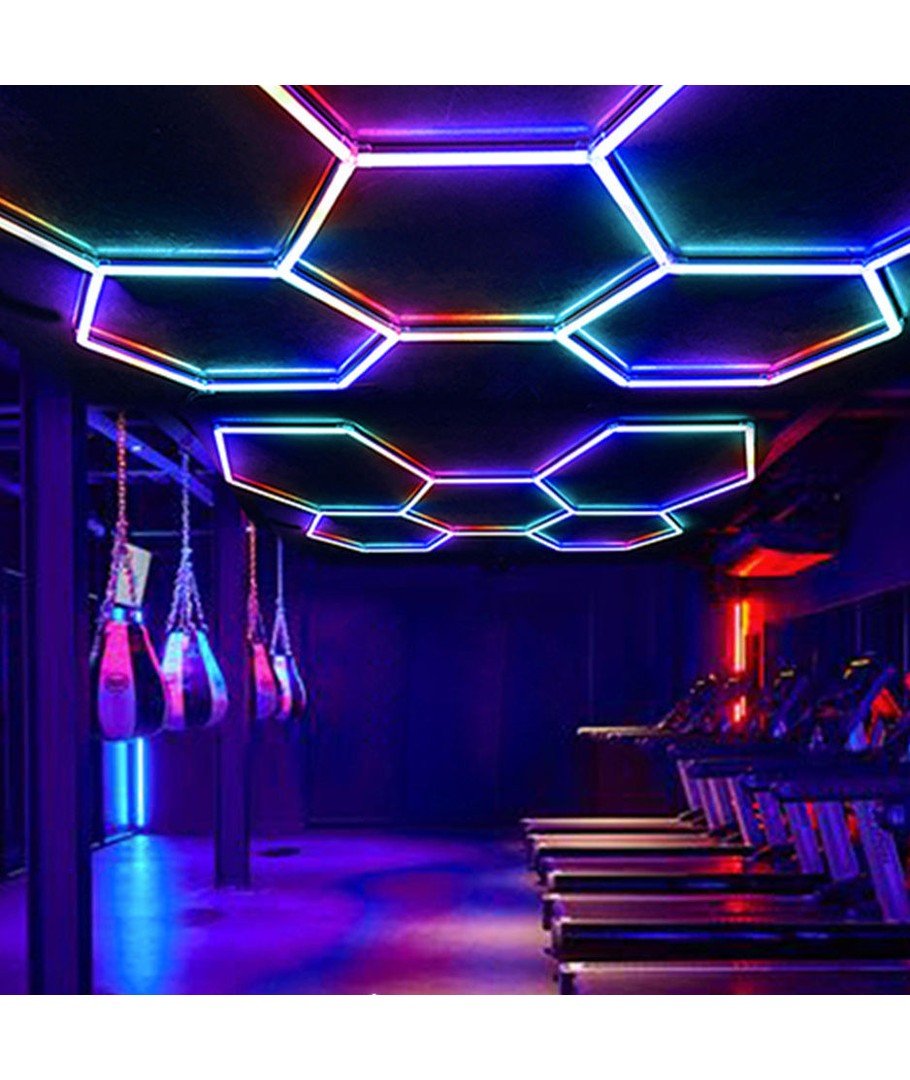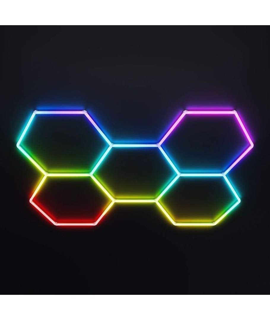 Hexagon RGBIC 5 fält komplett set - 80W är det perfekta belysningsvalet för dem som vill lägga till en touch av personlighet till sitt rum med en kraftfull och färgglad ljusupplevelse.