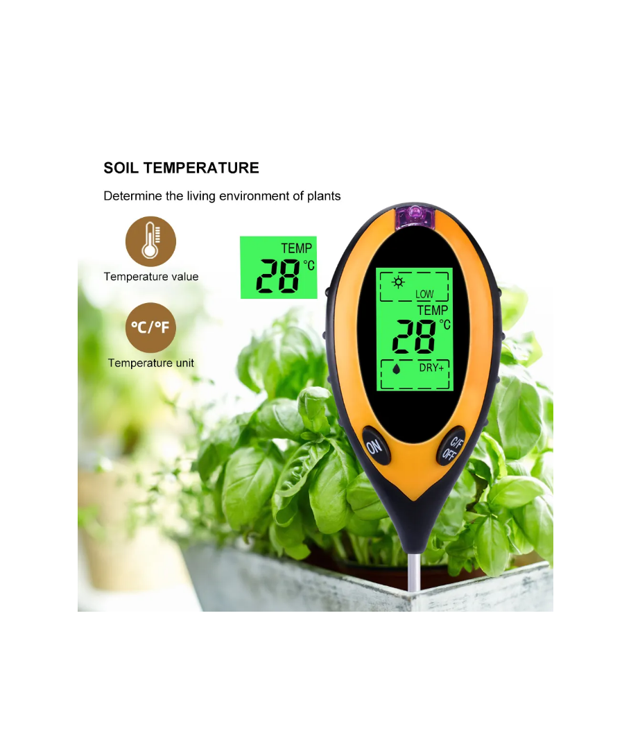 Upplev precision och mångsidighet med vår 4 i 1 mätare, som förenklar vården av dina växter genom att mäta pH, fukt, temperatur och ljusintensitet i en kompakt enhet.