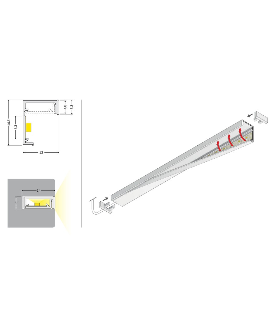 Anodiserad, infälld, LED-skena