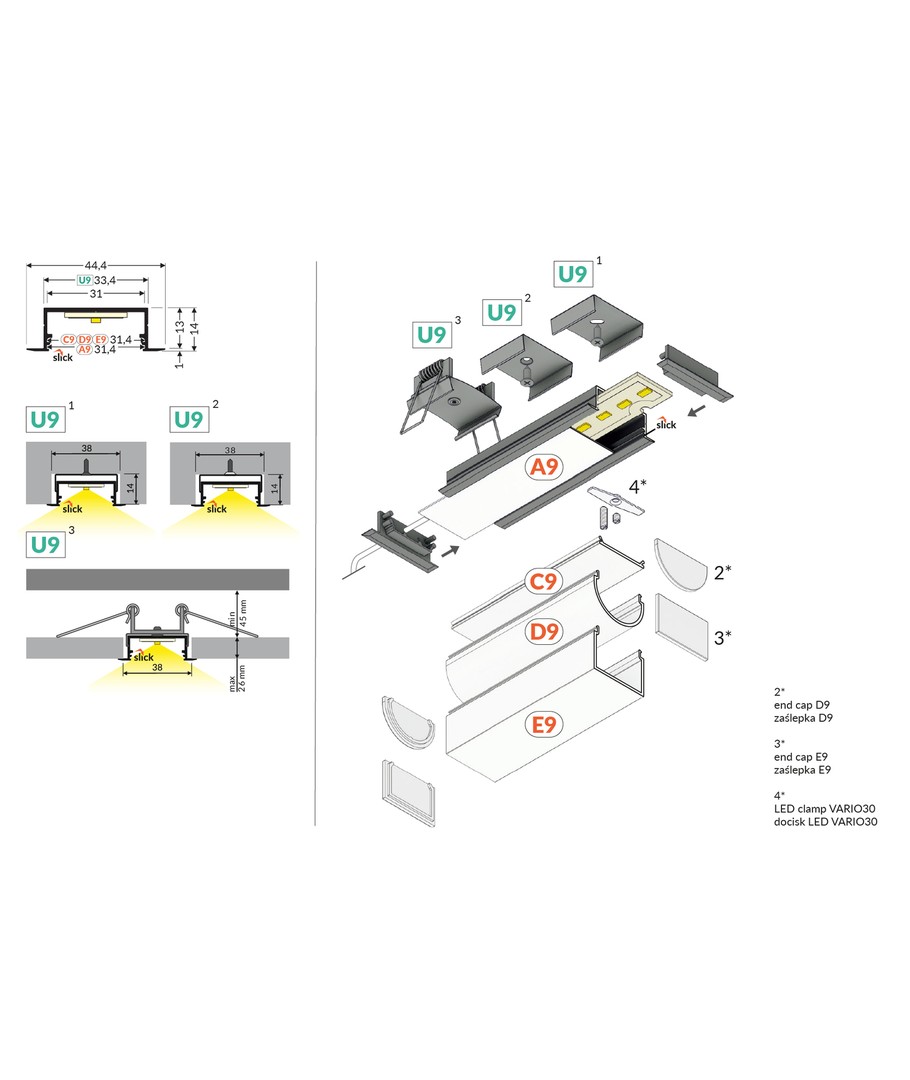 1m aluprofil VARIO30-06 ACDE-9/U9 - Anodiserad, inbyggd, LED-skena Expandera