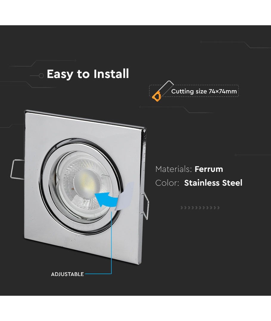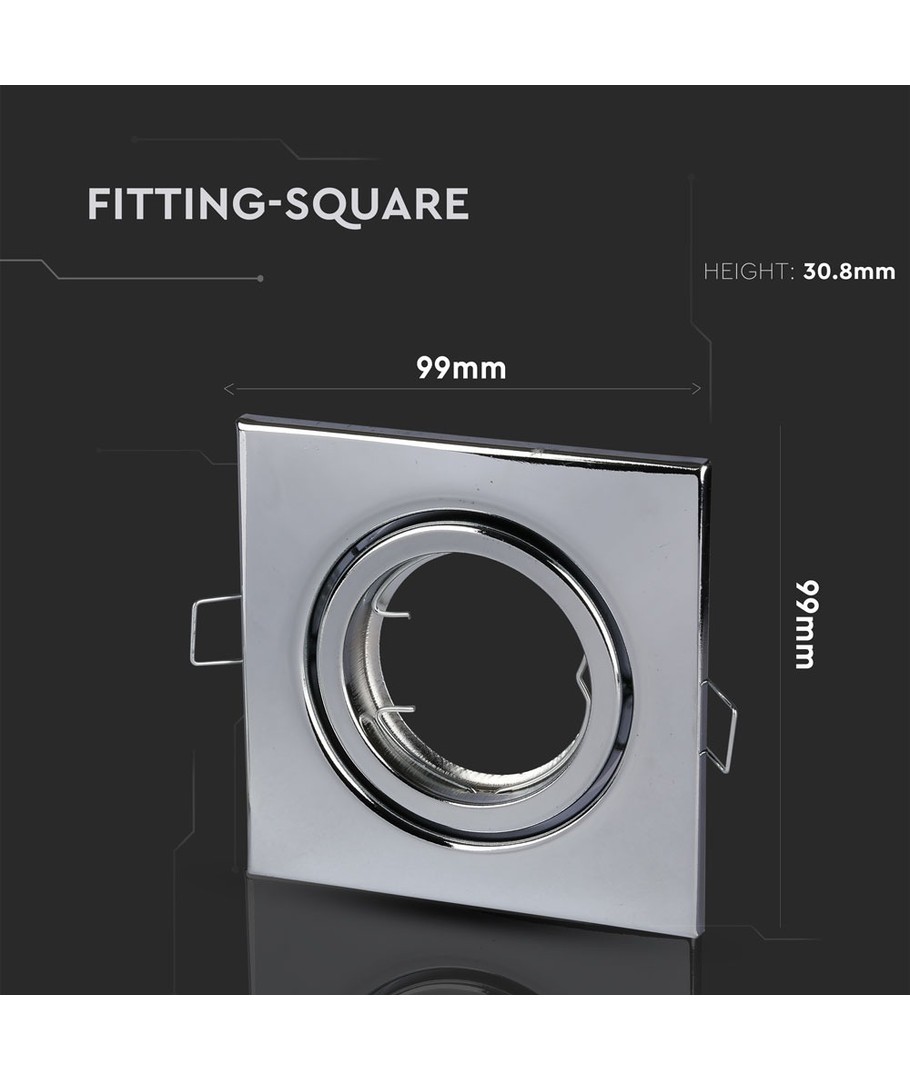 Denna GU10/MR16 Fyrkantig downlight är designad för snygg och effektiv belysning i hemmet eller på kontoret, utan medföljande ljuskälla för maximal flexibilitet.