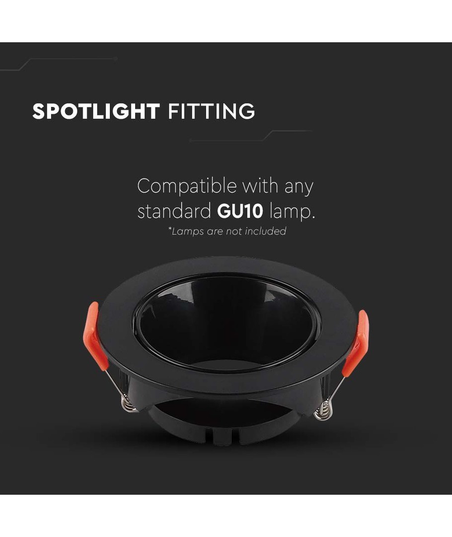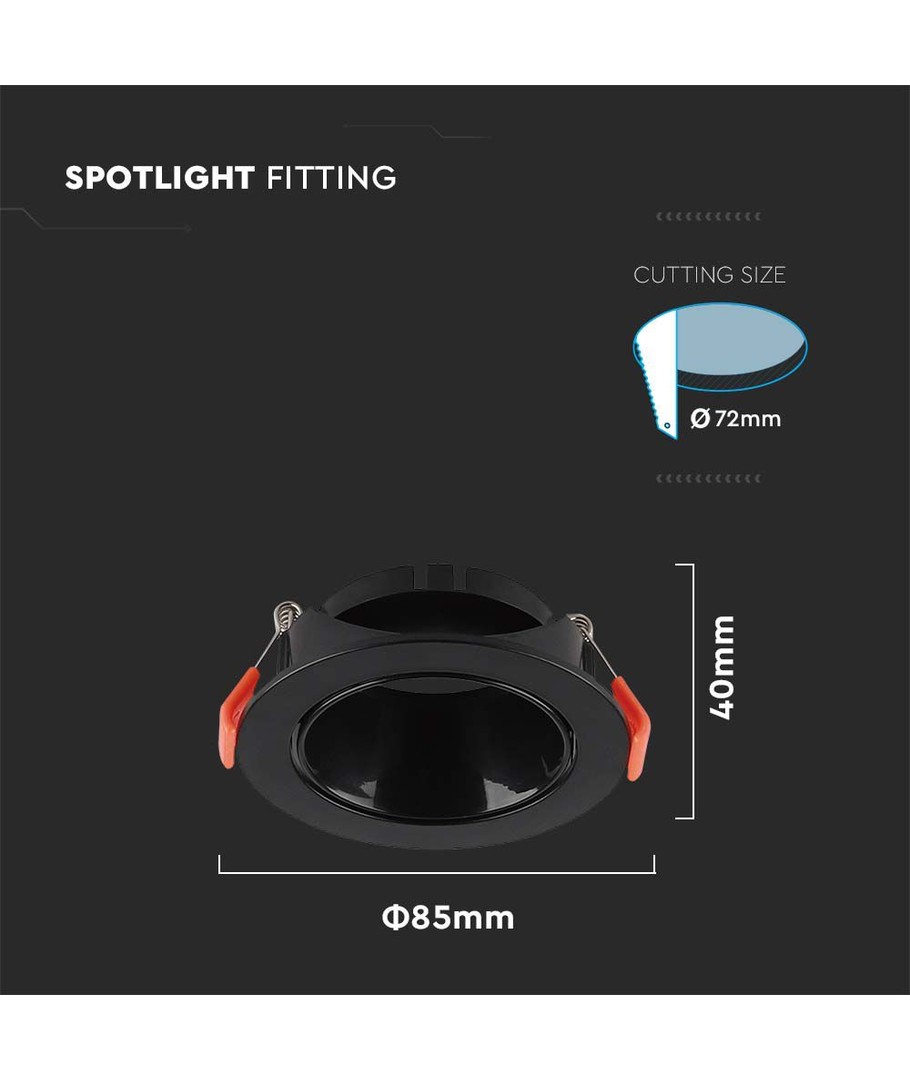 Denna mångsidiga downlight med svart reflektor är designad för att ge optimal belysning till alla rum, samtidigt som den erbjuder flexibilitet i valet av ljuskälla.