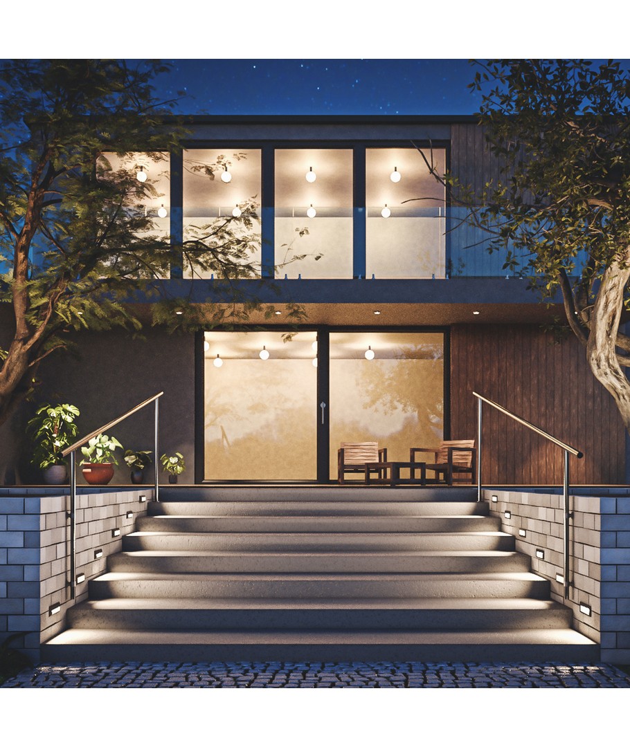 Möjligheten att välja mellan tre olika ljusfärger gör det enkelt att anpassa belysningen efter stämningen eller tid på dygnet. Den robusta konstruktionen och stilrena designen gör denna armatur till ett utmärkt val för både inomhus- och utomhustrappor.