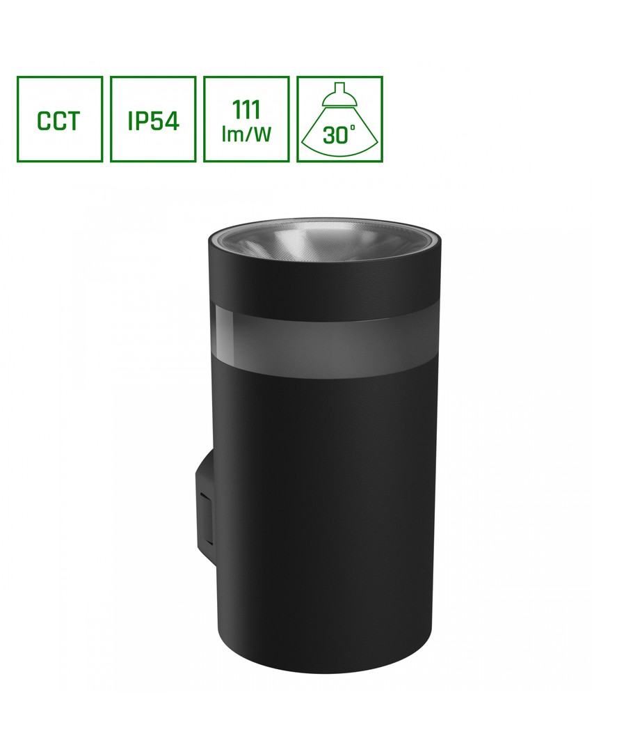 Den moderna och diskreta designen hos denna vägglampa gör den till ett stilrent inslag på alla slags fasader. Möjligheten att välja mellan olika ljusfärger ger en stor flexibilitet i hur du kan styra belysningen för att skapa rätt intryck.