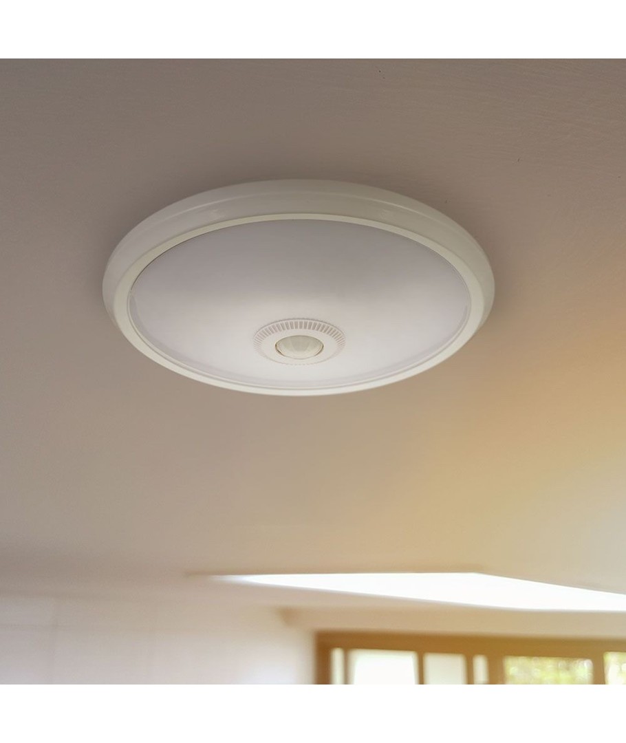 Denna lampa ansluts enkelt till 230V och levereras med en integrerad ljuskälla för enkel installation. Med dimensioner på 60 x Ø290 mm och en IP20-klassificering, är den lämplig för inomhusbruk där skydd mot vatten inte behövs.