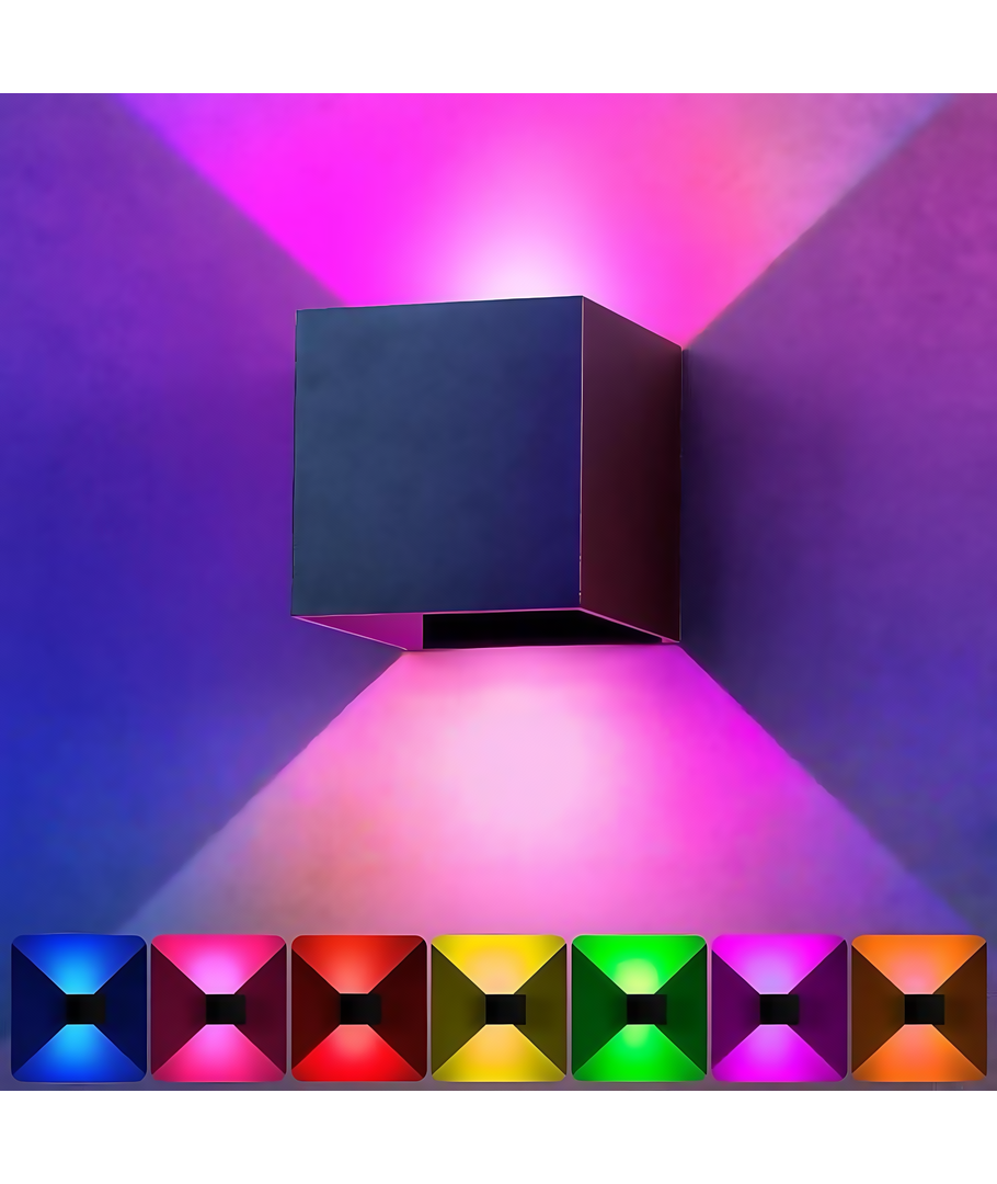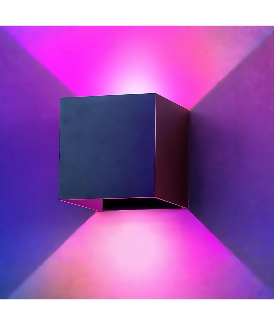 LEDlife RGB+CCT CUBIC 6W vägglampa är en modern och stilren svart, fyrkantig lampa som kan användas både inomhus och utomhus med IP65 skyddsklassificering.
