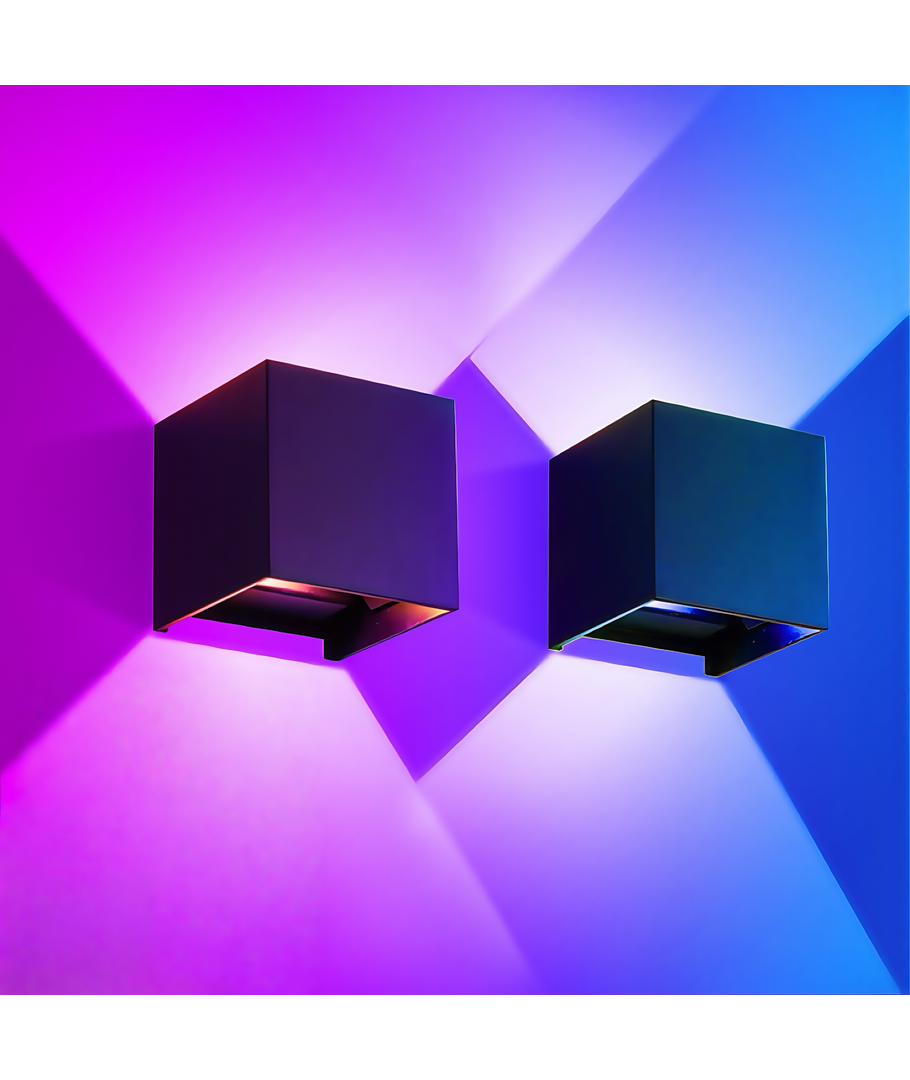Upplev en stilfull ljusdesign med LEDlife RGB+CCT CUBIC 6W vägglampa, som kombinerar innovation och funktionalitet i en modern fyrkantig form, perfekt för både inomhus- och utomhusbruk.