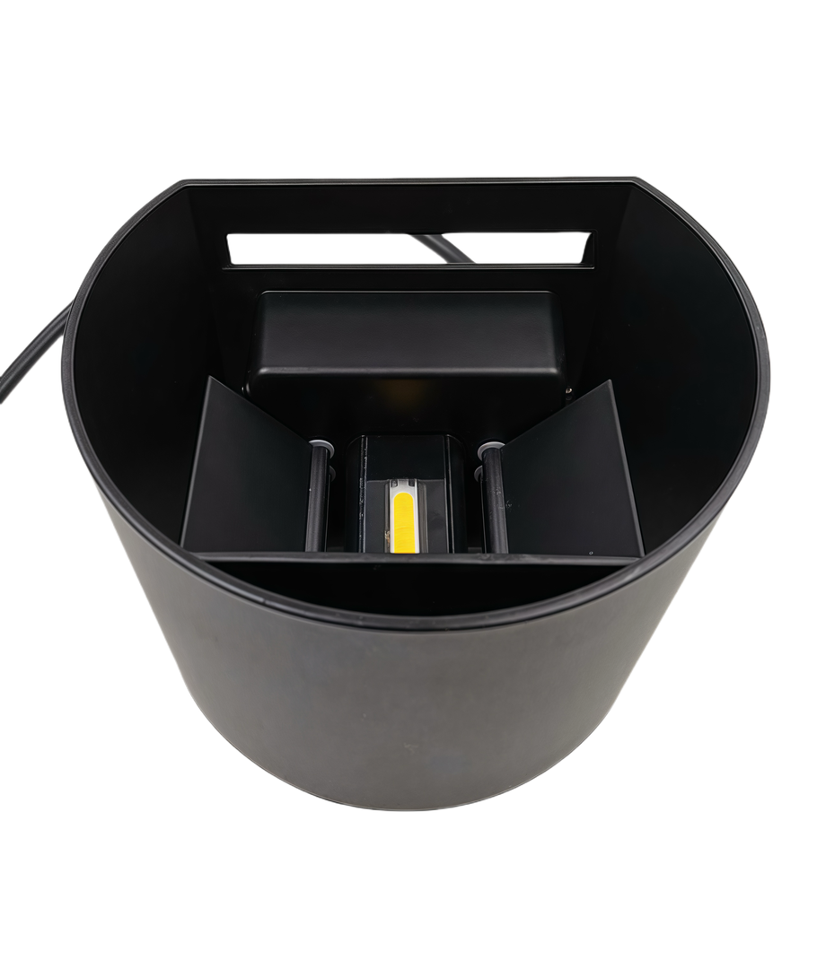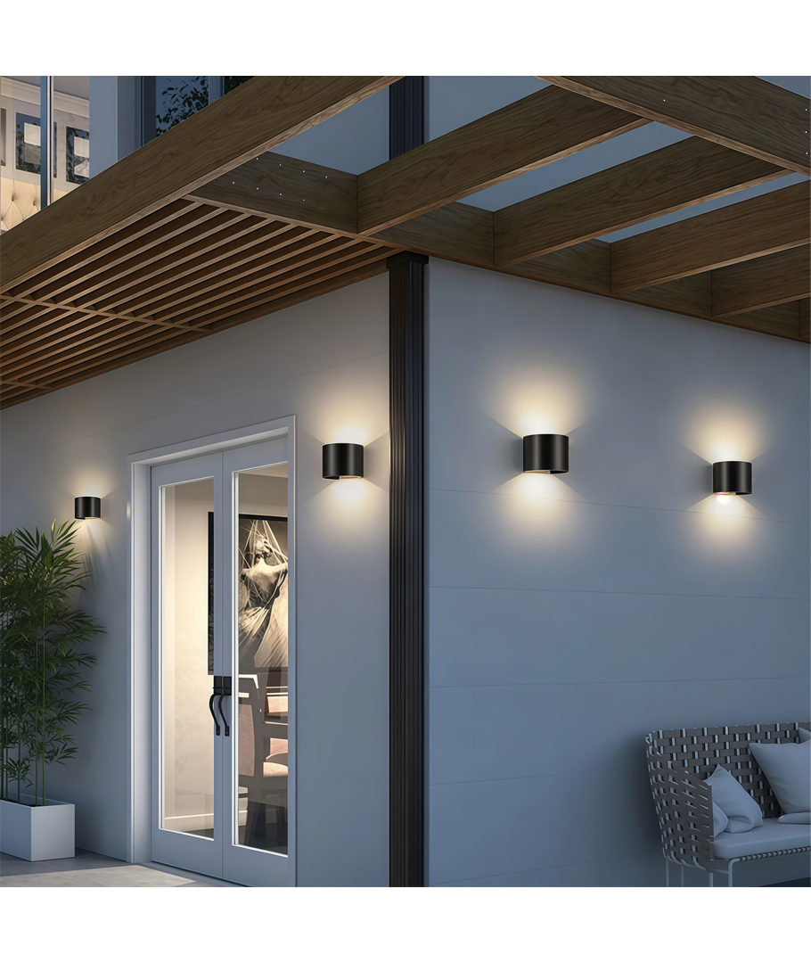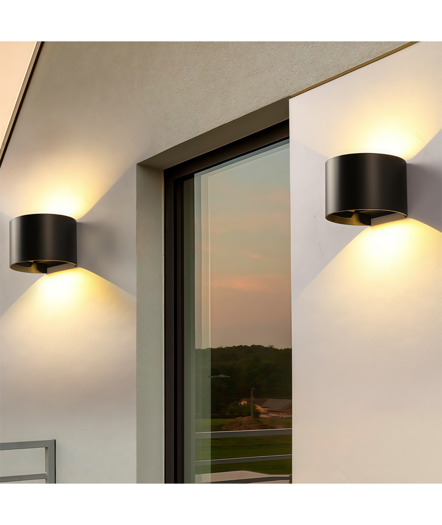 Denna eleganta svarta vägglampa kombinerar stil och funktion genom att ge ett fokuserat ljus, både uppåt och nedåt. Den är perfekt för alla miljöer, både inomhus och utomhus, tack vare sin IP65-klassificering.