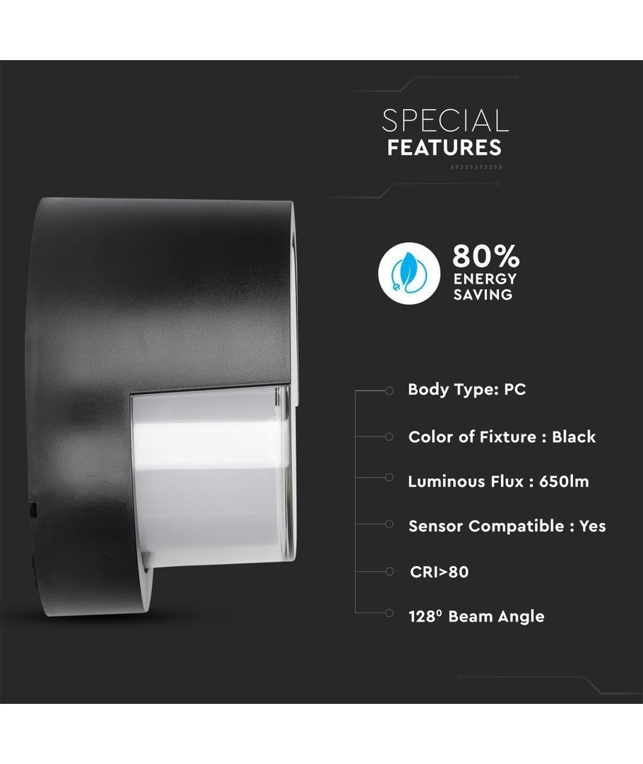 Denna 12W LED vägglampa är designad för att erbjuda fantastisk belysning i utomhusmiljöer. Med sin eleganta runda och svarta design passar den perfekt för olika typer av exteriörer.