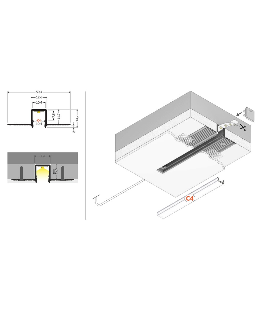 1m aluprofil HIDE10 C4 är en mångsidig anodiserad LED-skena för inbyggnad i väggar och tak.