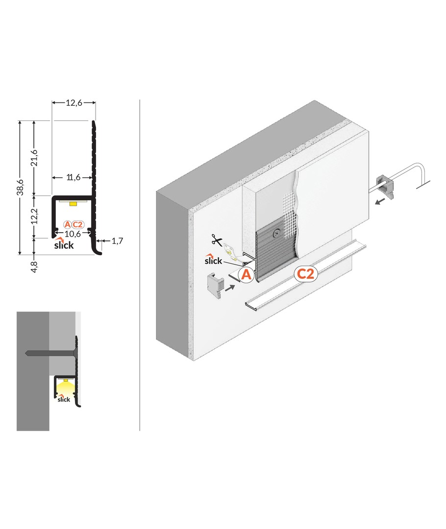 Anodiserad, inmurning, LED skena