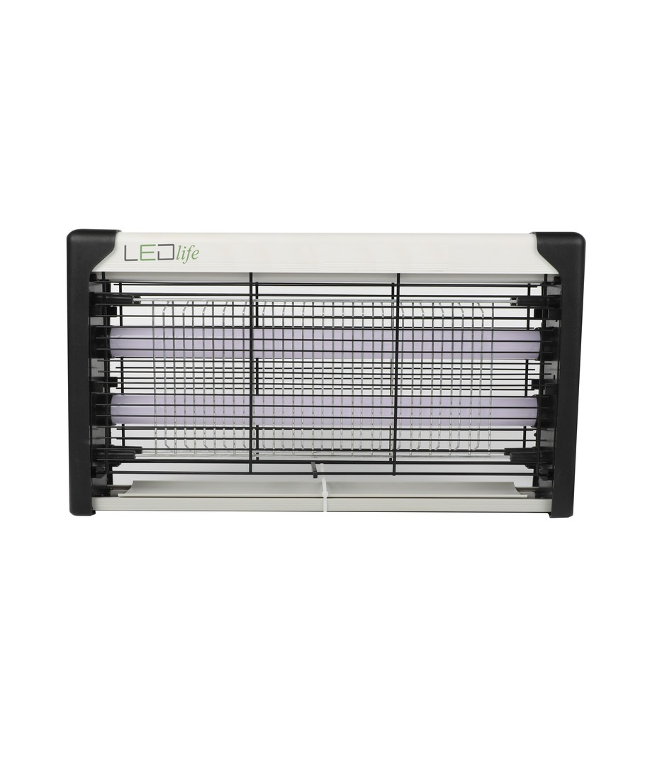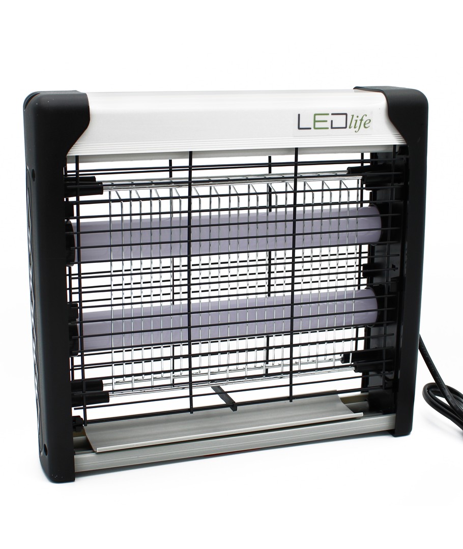 Lampan har en inbyggd LED som attraherar insekterna, varefter elnätet dödar dem. Det yttre gallret förhindrar oavsiktlig kontakt med elnätet.