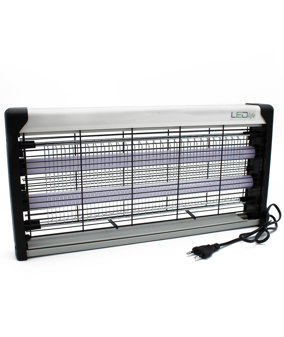 Lampan har en inbyggd LED som attraherar insekterna, varefter elnätet dödar dem. Det yttre gallret förhindrar oavsiktlig kontakt med elnätet.