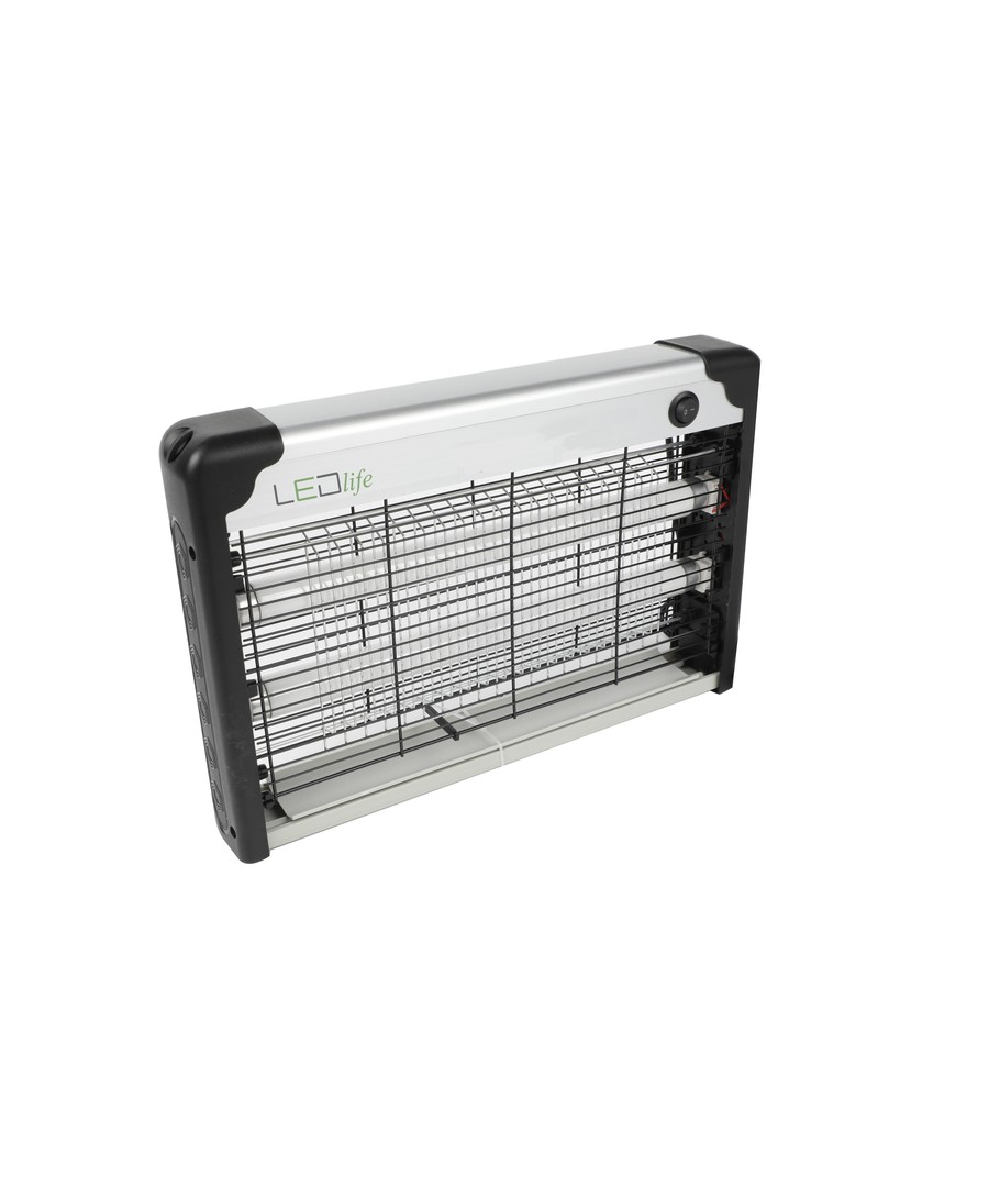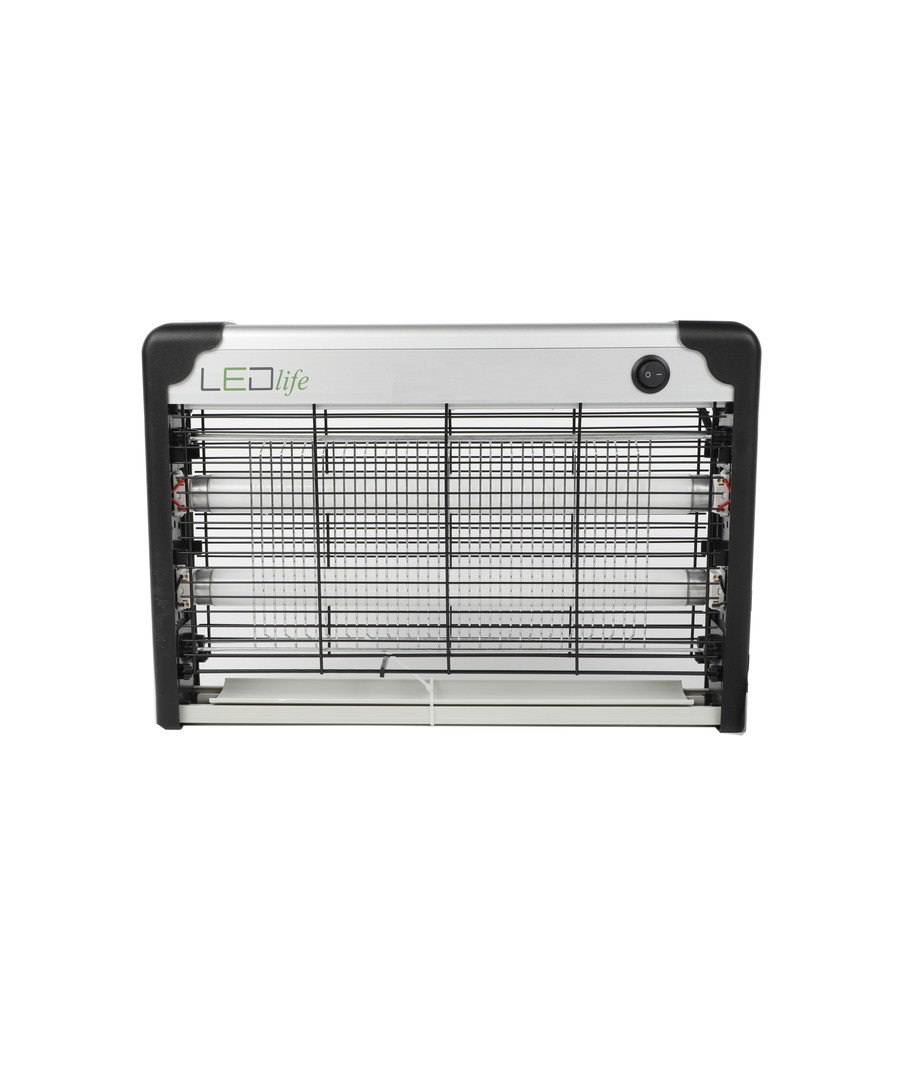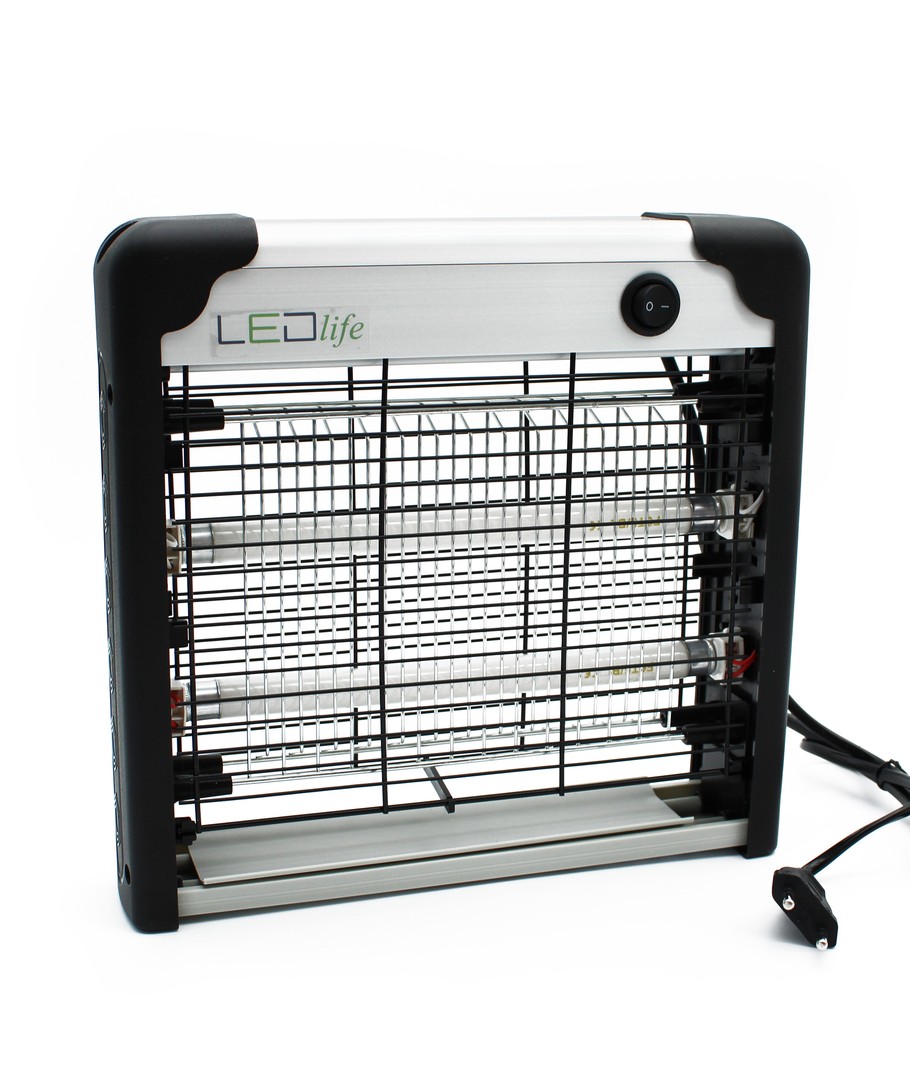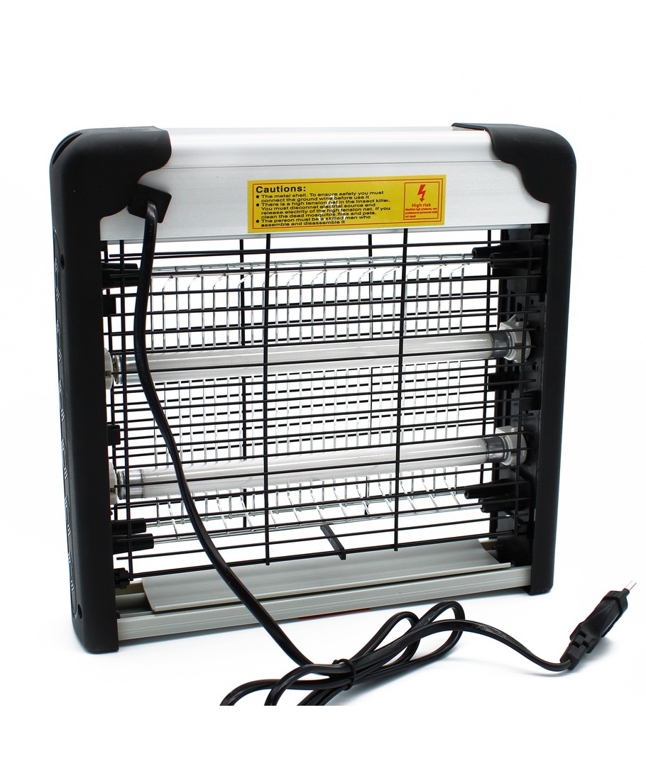2 st. utbytbara UV-rör lockar till sig insekterna, varefter elnätet dödar dem. Det yttre gallret förhindrar oavsiktlig kontakt med elnätet.