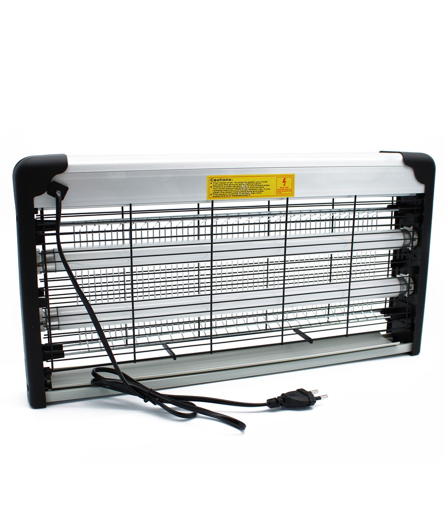 2 st. utbytbara UV-rör lockar till sig insekterna, varefter elnätet dödar dem. Det yttre gallret förhindrar oavsiktlig kontakt med elnätet.
