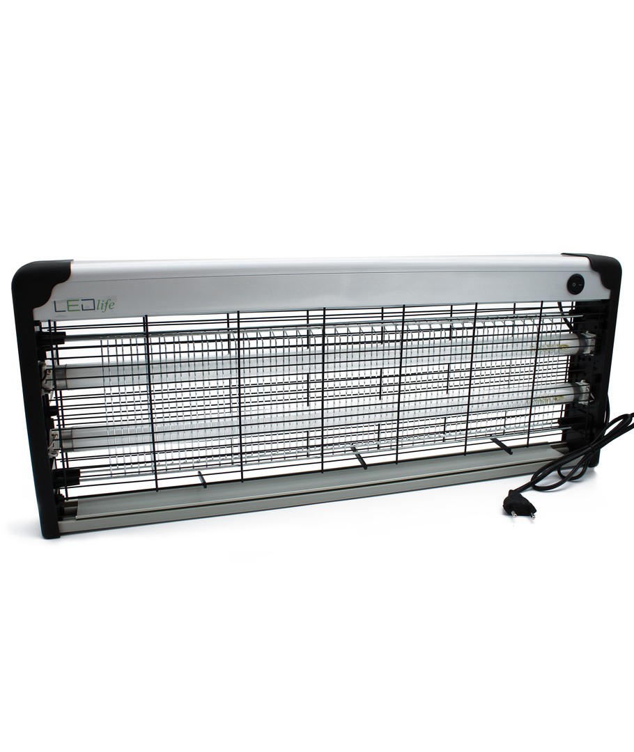 2 st. utbytbara UV-rör lockar till sig insekterna, varefter elnätet dödar dem. Det yttre gallret förhindrar oavsiktlig kontakt med elnätet.