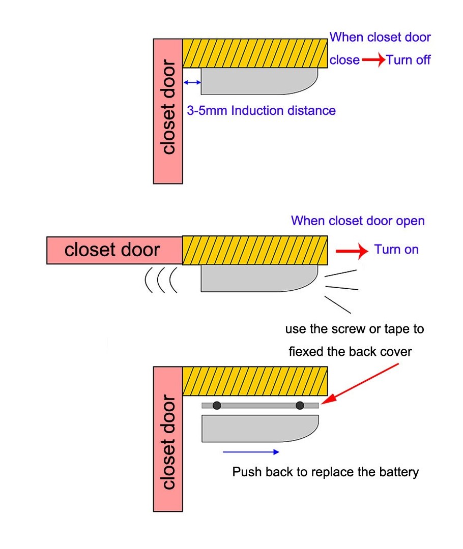Lampan innehåller en sensor som placeras under dörren eller lådan. Ljuset tänds själv när avståndet ökar.