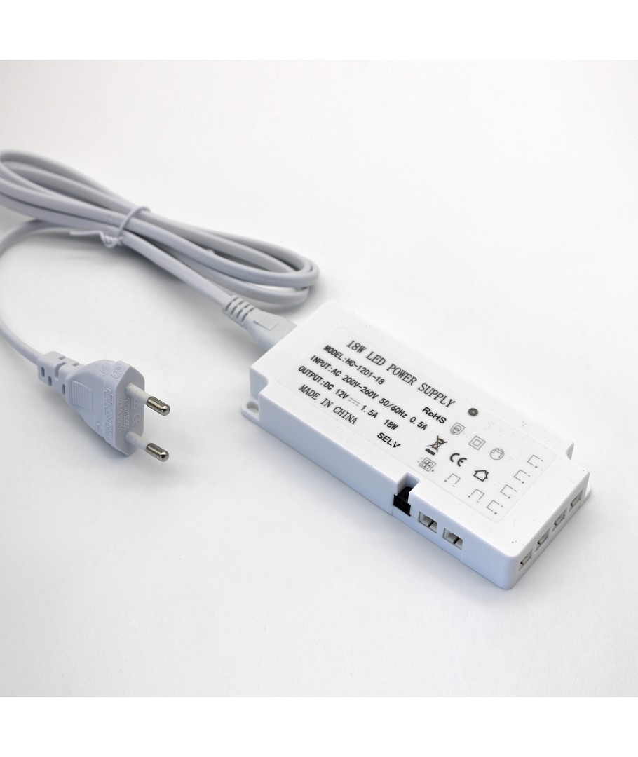 Strömförsörjningen har måtten: 120x55x20mm och tar därför nästan ingenting. Strömförsörjningen kan enkelt döljas ovanpå väggskåp mm.