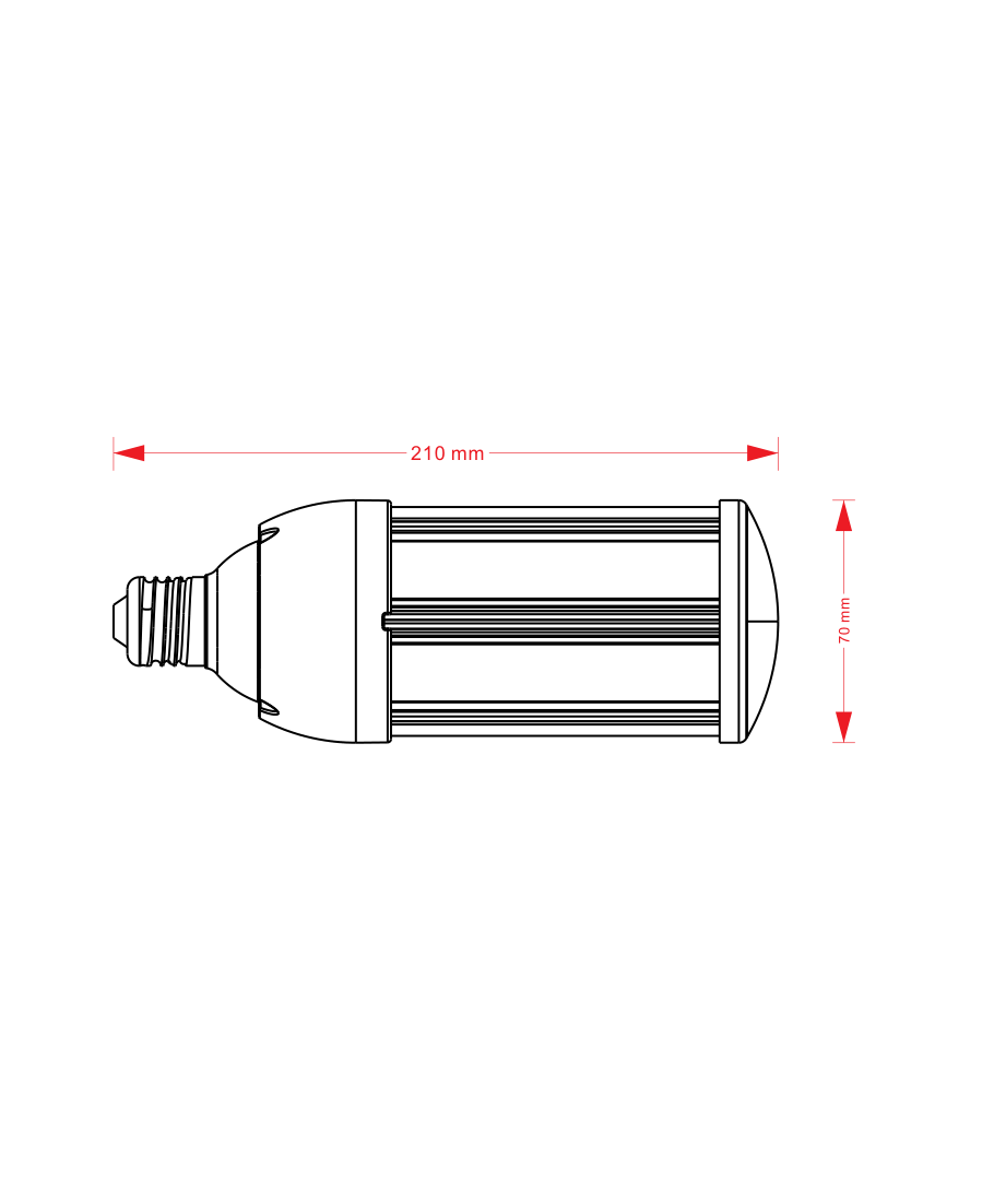 Med sina dimensioner på 210 x Ø70 mm passar denna LED-lampa i de flesta standardarmaturer, samtidigt som det frostade glaset ger en jämn ljusspridning och minskar starka skuggor.