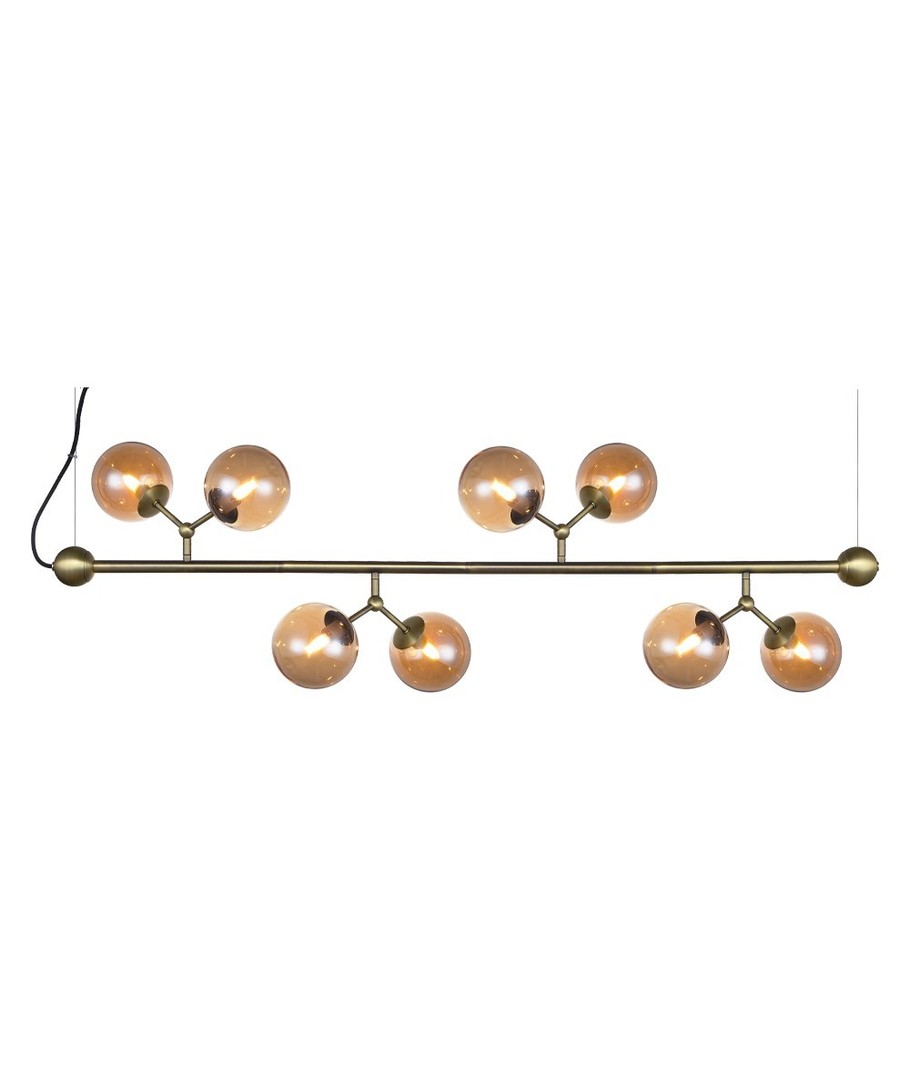 Ge ditt hem en modern och sofistikerad touch med denna eleganta långbordslampa från Halo Design. Med sin unika design i oxidfärgad metall och åtta glaslampor blir den ett dekorativt inslag i rummet, samtidigt som den erbjuder en kraftfull ljuskälla.