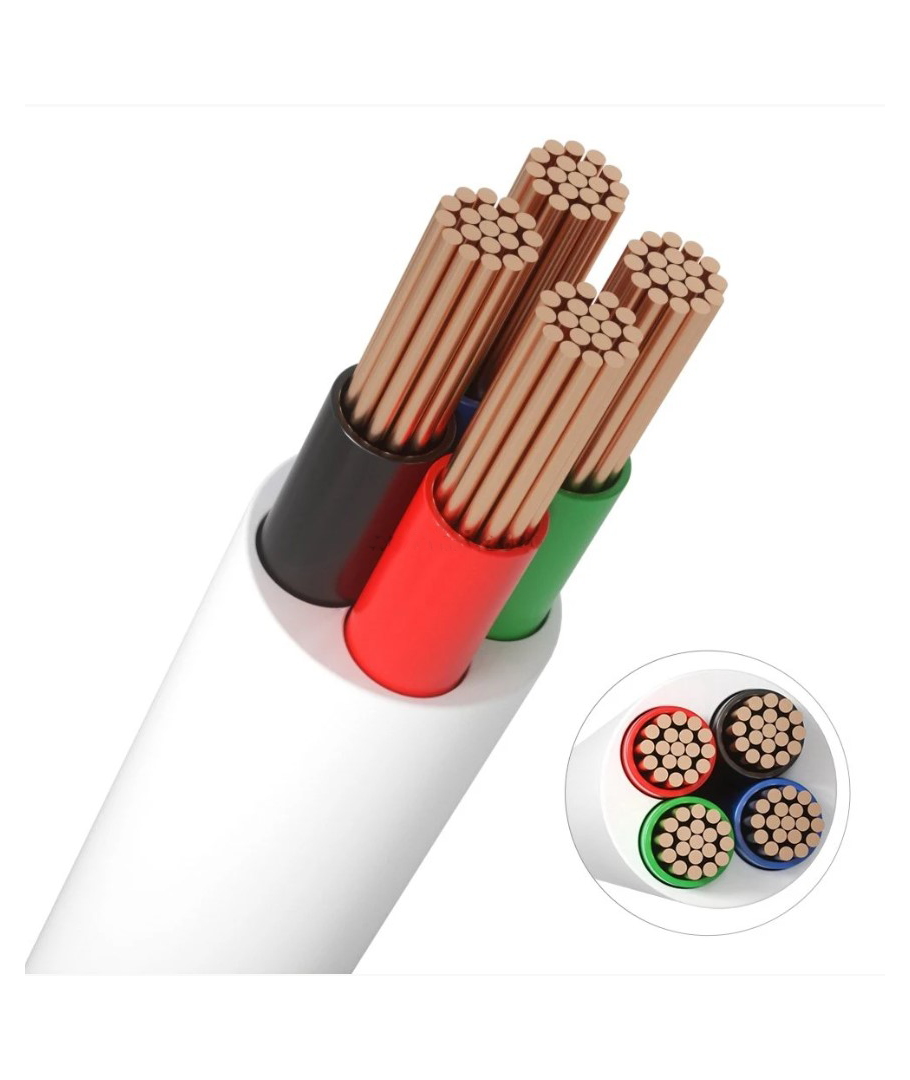 12-24V RGB kabel, vit rund 4 x 0,5 mm², löpmeter, min. 5 meter