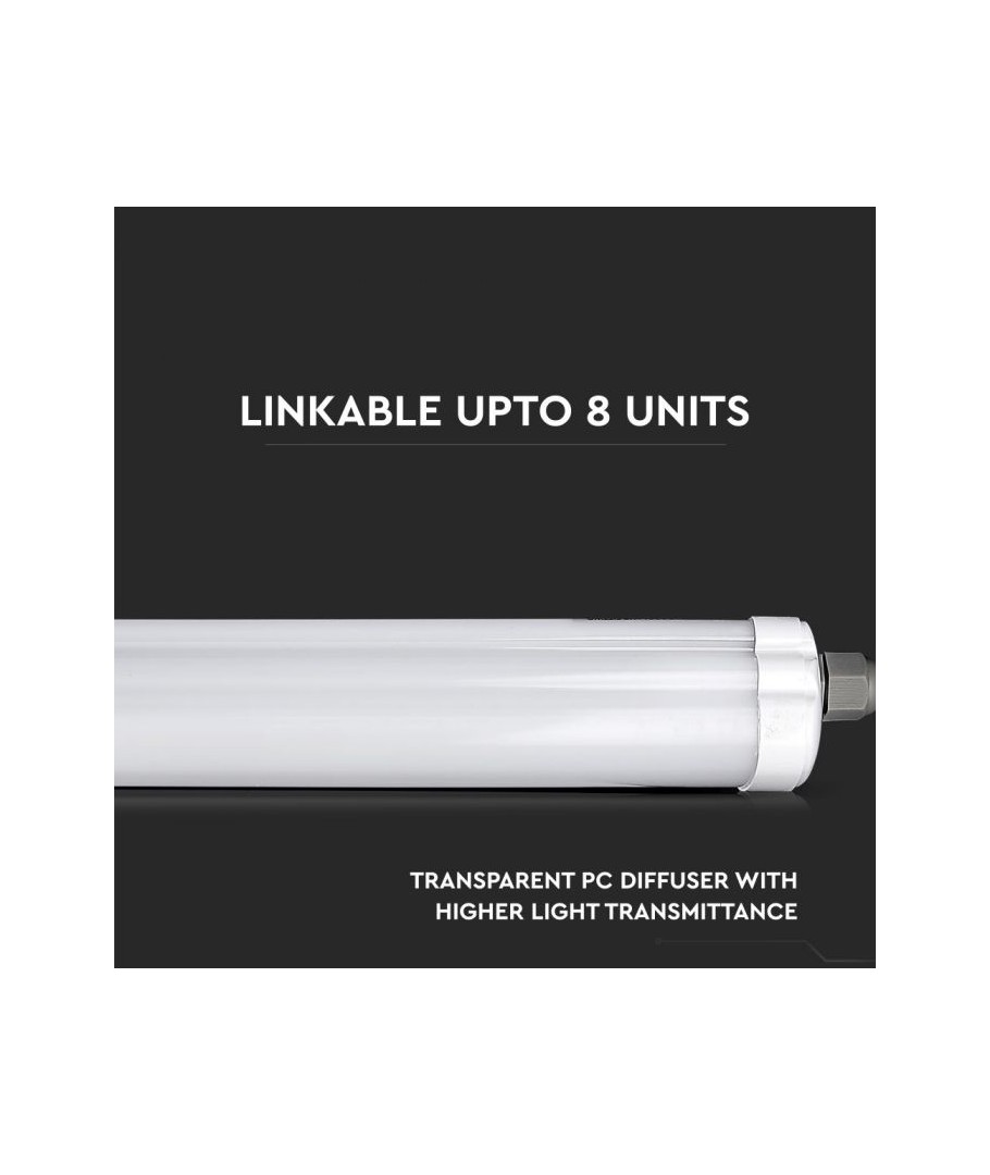 V-Tac vattentät 36W komplett LED armatur är en effektiv och hållbar belysningslösning designad för att uppfylla kraven för både kommersiella och industriella miljöer.