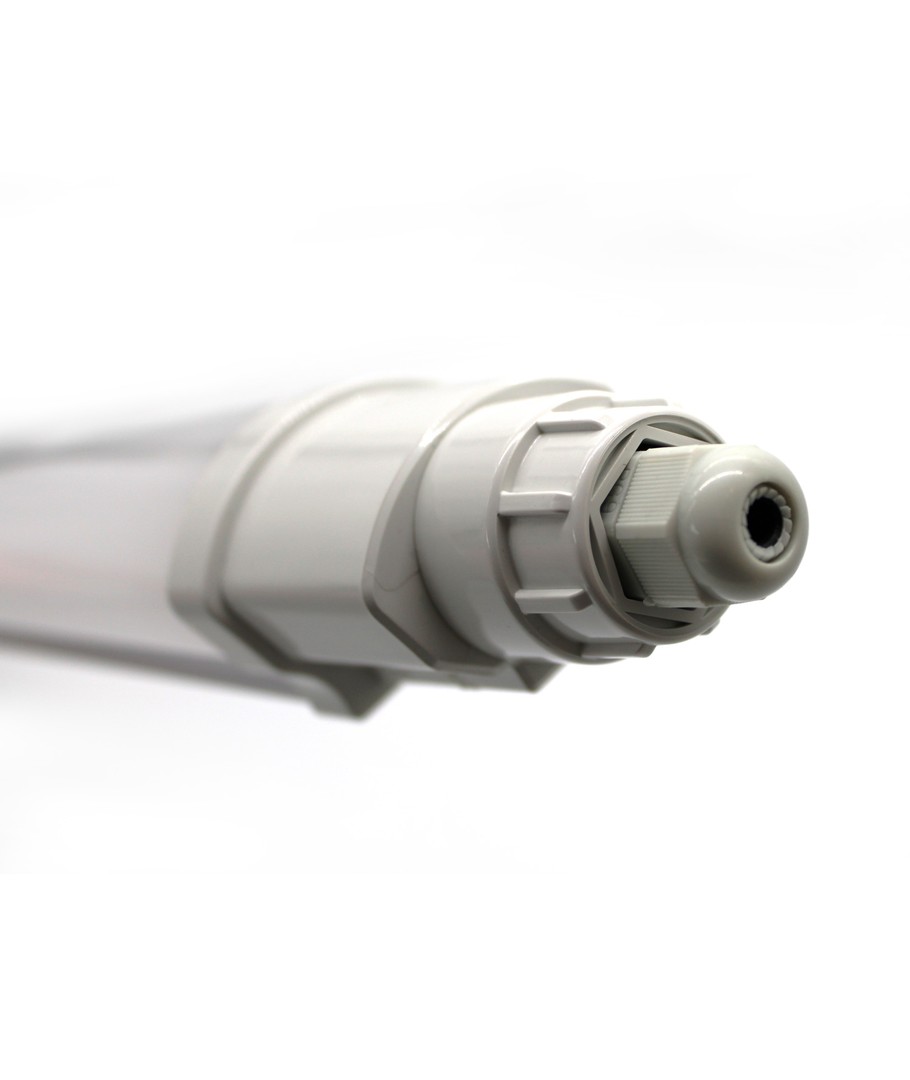Armaturen har inskruvning för kabelgenomföring i båda ändar, för enkel seriekoppling till nästa armatur.