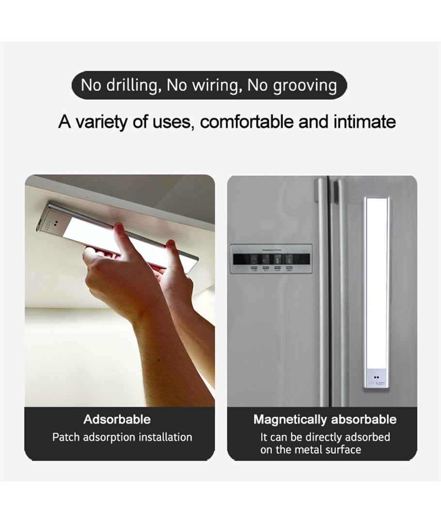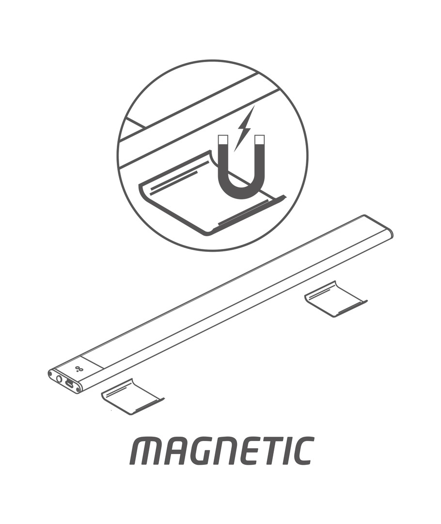 Strömbrytaren på armaturen kan användas för att ändra färgtemperaturen från varmvitt ljus till kallvitt och för att tända och släcka ljuset. Lampan är enkel att installera tack vare de 2 metallstyckena med självhäftande tejp och magnetisk yta på baksidan av armaturen.
