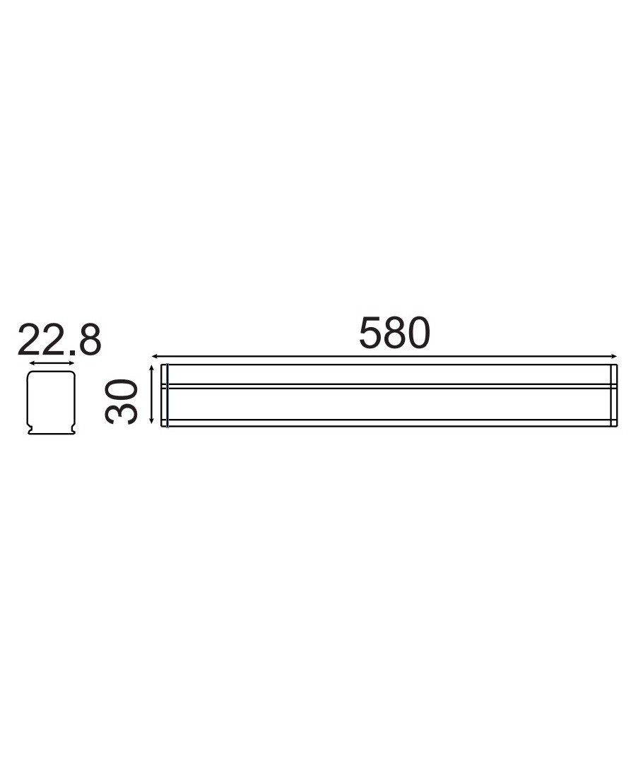 Mätningar på 580 x 30 x 22.8 mm gör denna armatur kompakt och lätt att installera. Notera att den har en IP20-klassificering och är därför inte vattentät. Armaturen levereras med en integrerad ljuskälla, vilket gör att du slipper besväret med separata glödlampor.