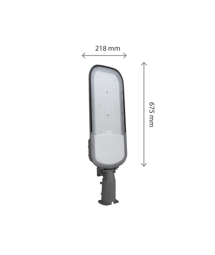 Den kraftfulla 150W skymnings LED-gatlampa är designad för att leverera optimal belysning i utomhusområden med effektivitet och hållbarhet. Denna lampa är utrustad med en skymningssensor som säkerställer automatisk justering av ljuset.