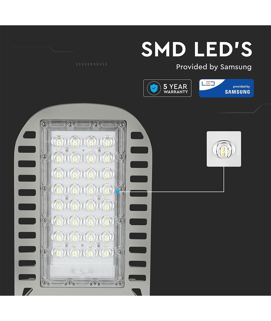Utforska den innovativa V-Tac 50W LED gatuarmaturen, som utrustats med högpresterande Samsung LED-chip för att säkerställa enastående ljuskvalitet och hållbarhet. Denna gatuarmatur är en perfekt lösning för utomhusbelysning tack vare dess robusta design och effektiva energieffektivitet.