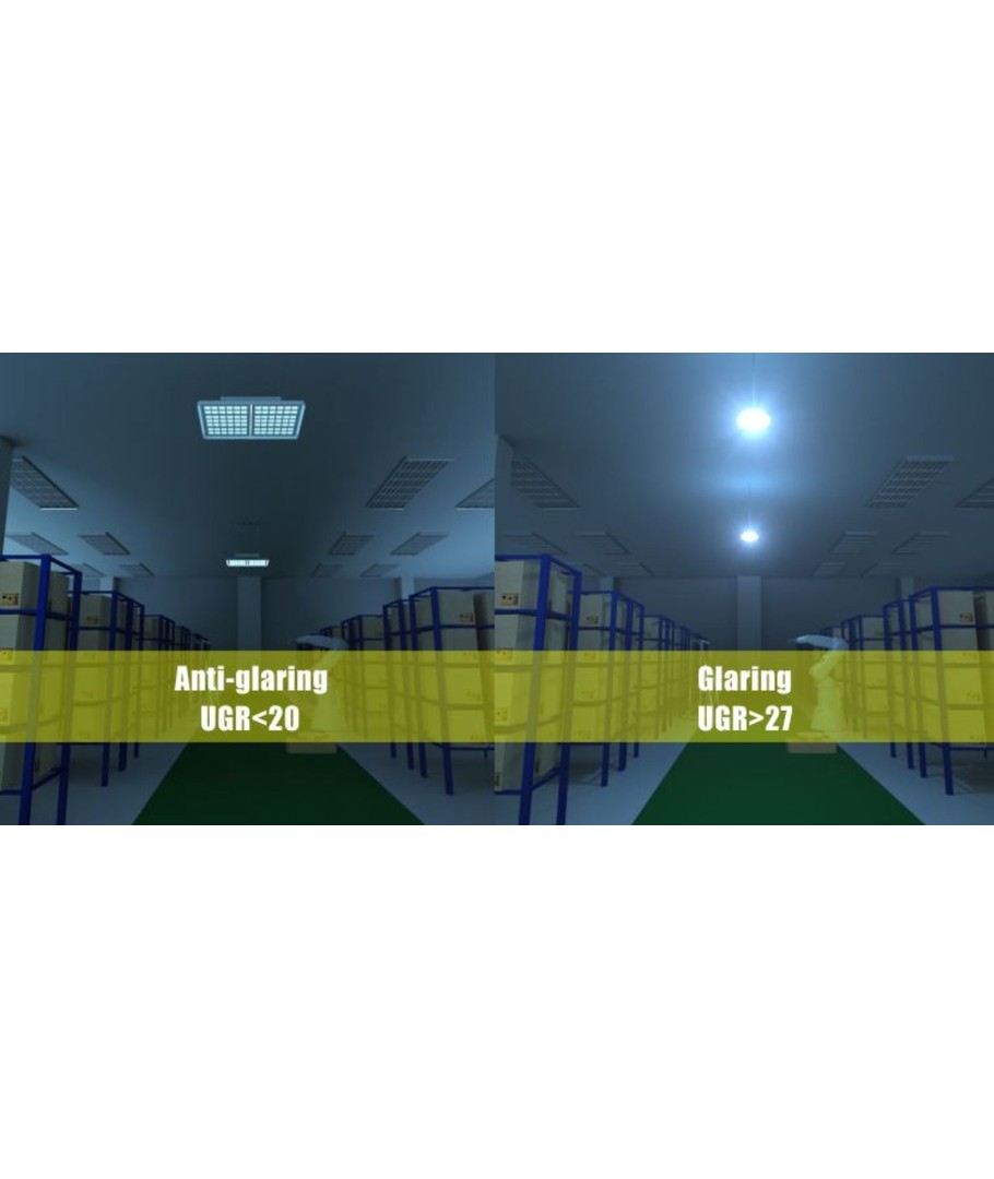 Med måtten 362 x 257 x 120 mm är denna praktiska taklampa en robust och effektiv lösning för alla typer av miljöer där högkvalitativ och bländfri belysning krävs.