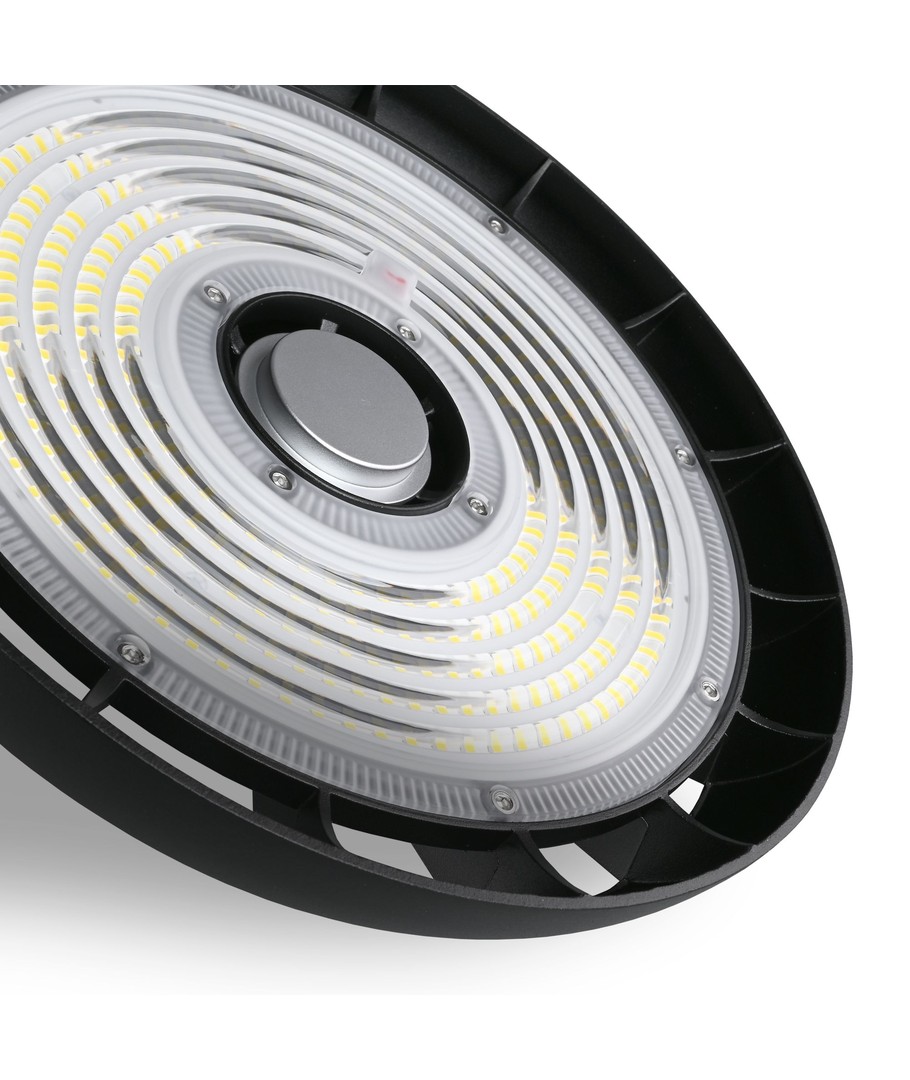 Denna effektiva 150W LED High Bay-lampa är den perfekta lösningen för belysning i stora rum och industriella miljöer, där hög ljusstyrka och hållbarhet krävs.