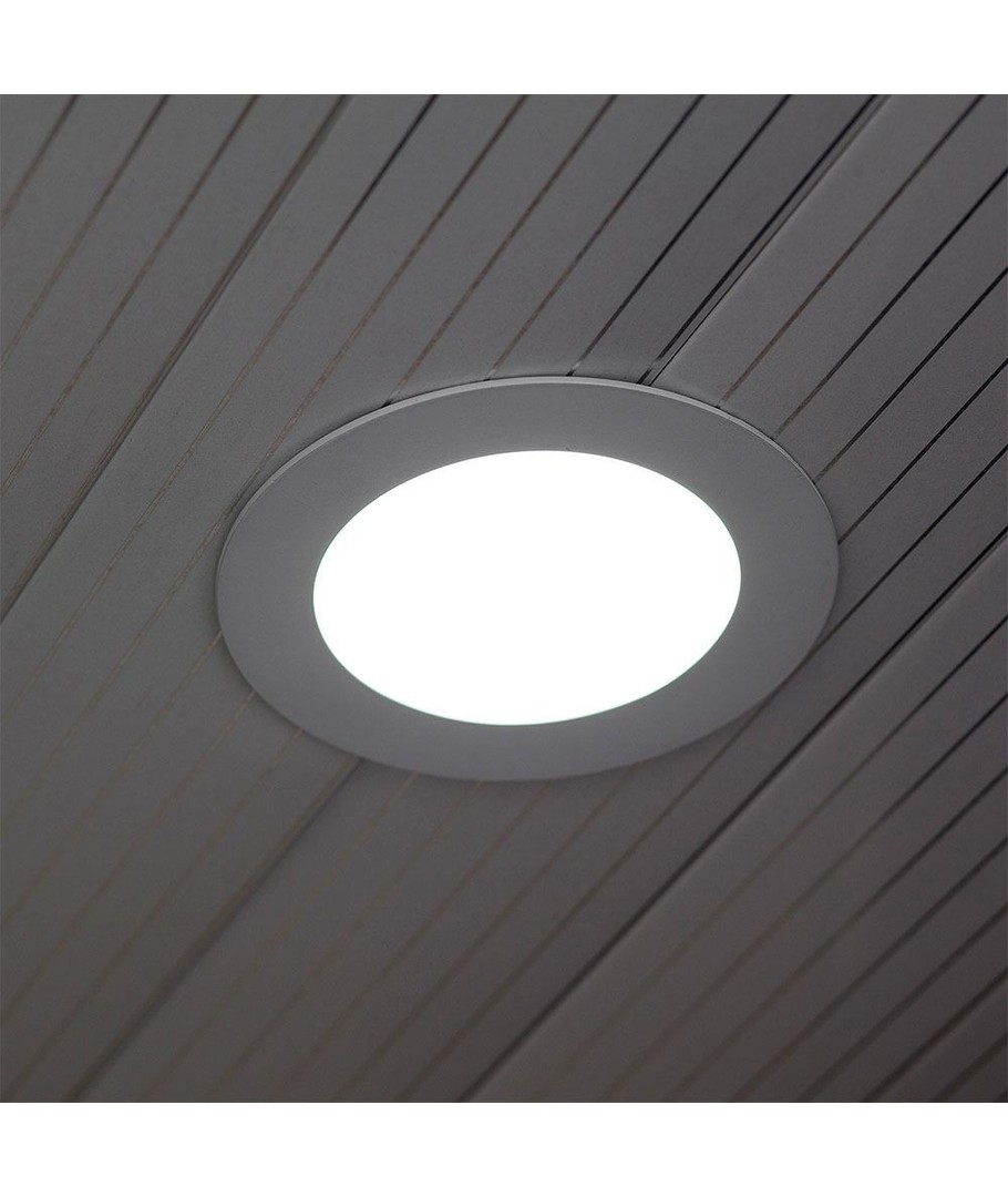 För en smidig infällning kräver panelen ett hålmått på Ø7,3 cm. Den passar i de flesta utrymmen med sina 12 x Ø8,4 cm i storlek. Observera att produkten har en IP20-klassning, vilket innebär att den inte är vattentät och därför inte lämpar sig för våta utrymmen.