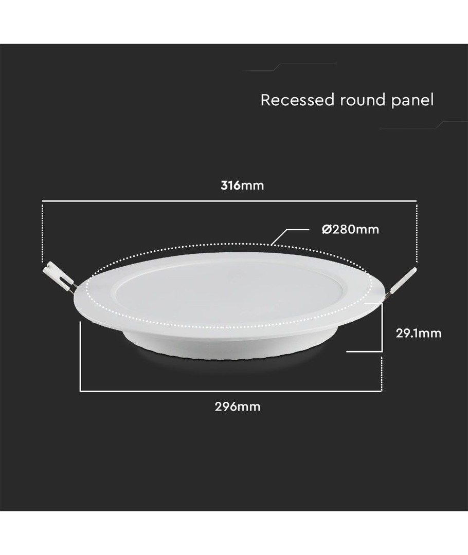 LED infälld panel, 24W - Hål: Ø28 cm, Mått: Ø29,6 cm V-TAC Expandera