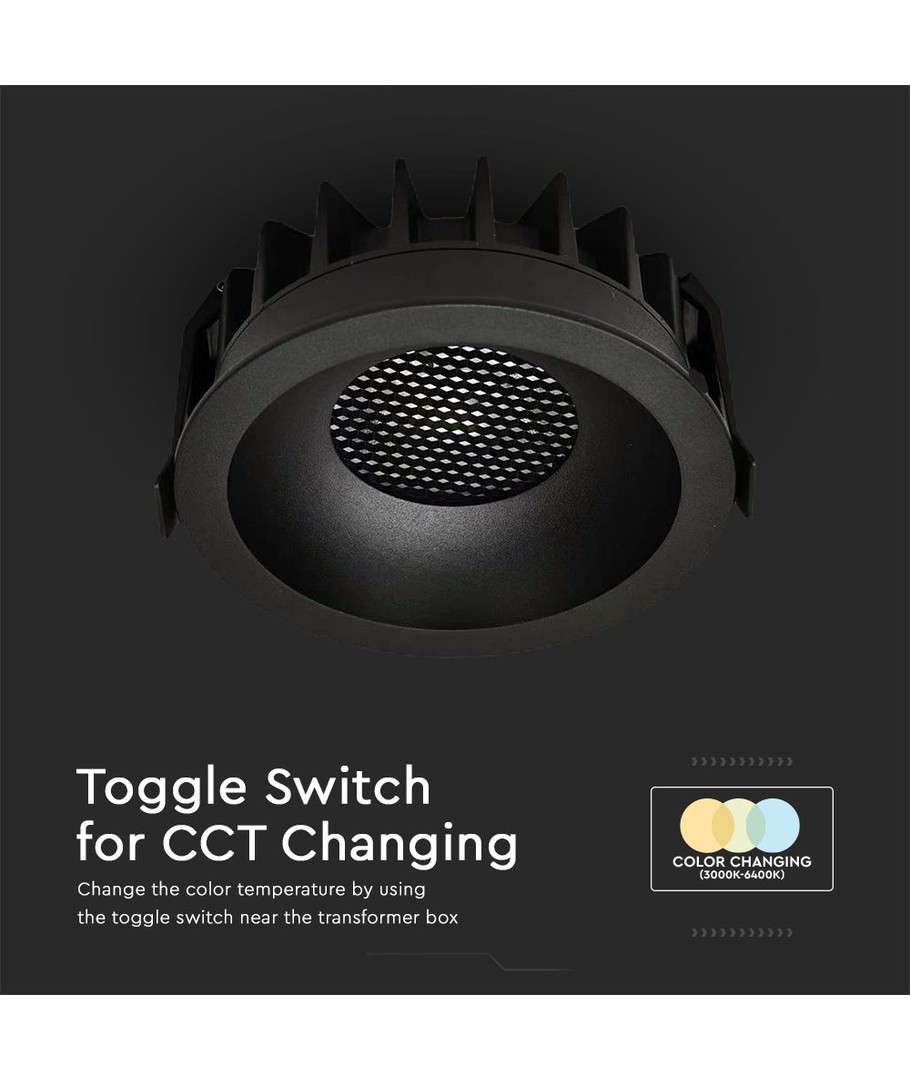 Upplev den perfekta belysningen med vår 12W Bländfri RA90 CCT Downlight, designad för att förbättra atmosfären i vilket rum som helst med stilfull svart front och avancerade funktioner.