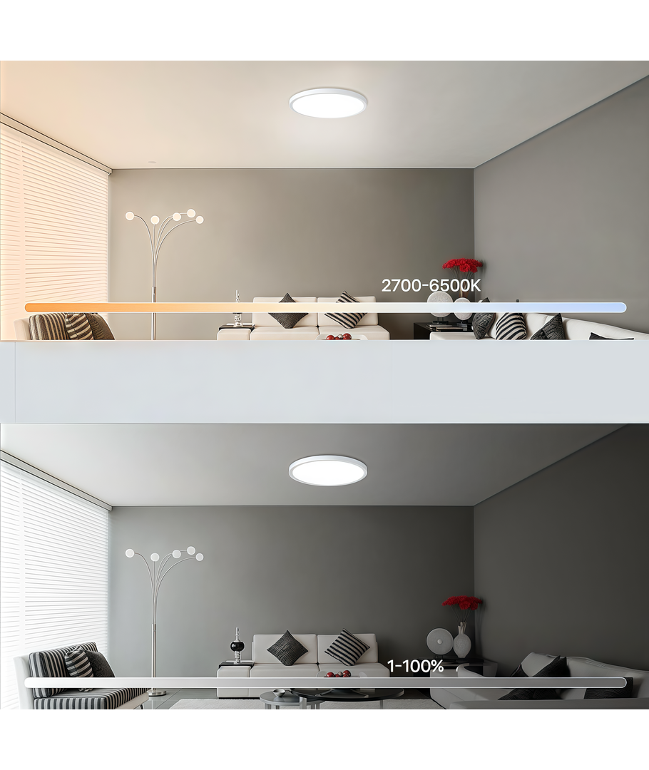 Med Tuya-kompatibilitet kan du enkelt integrera denna taklampa i ditt smarta hem-system, vilket ger dig möjlighet att styra ljuset direkt från din smartphone.