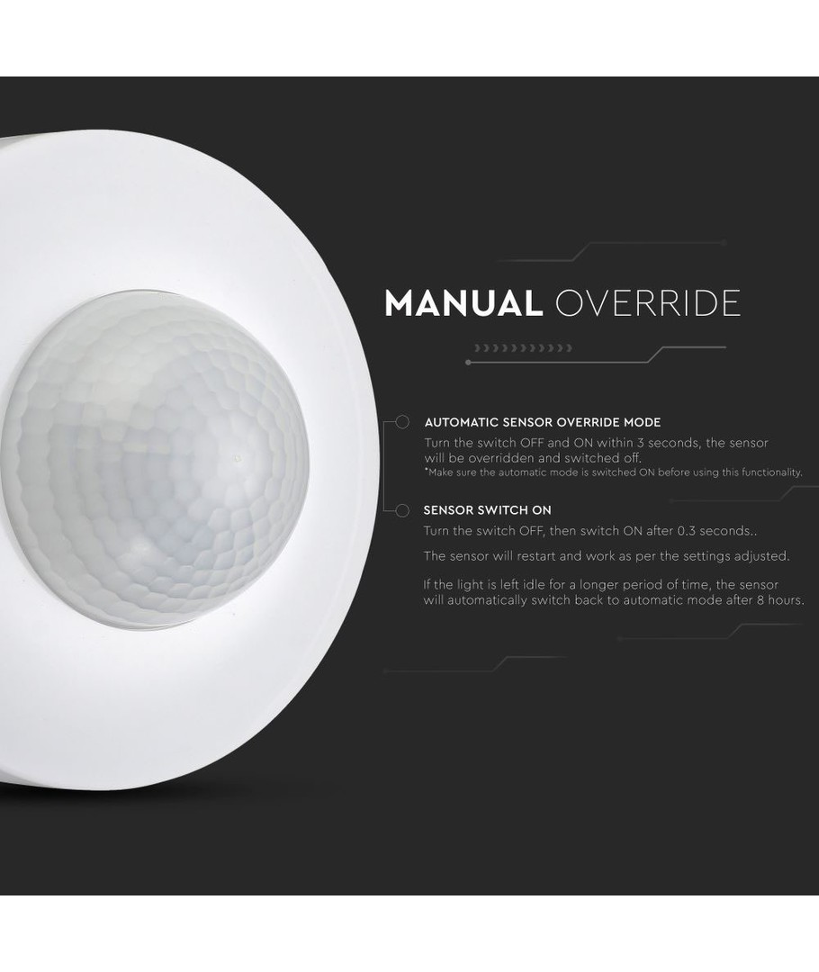 Upptäck en effektiv lösning för intelligent ljusstyrning med vår Taksensor med manuell överstyrning, designad för inomhusbruk med en maximal belastning på 300W.
