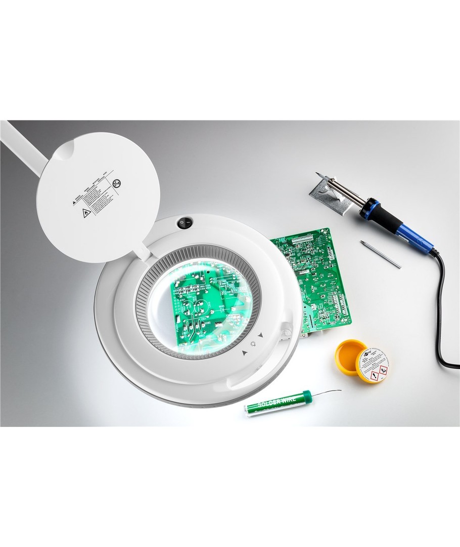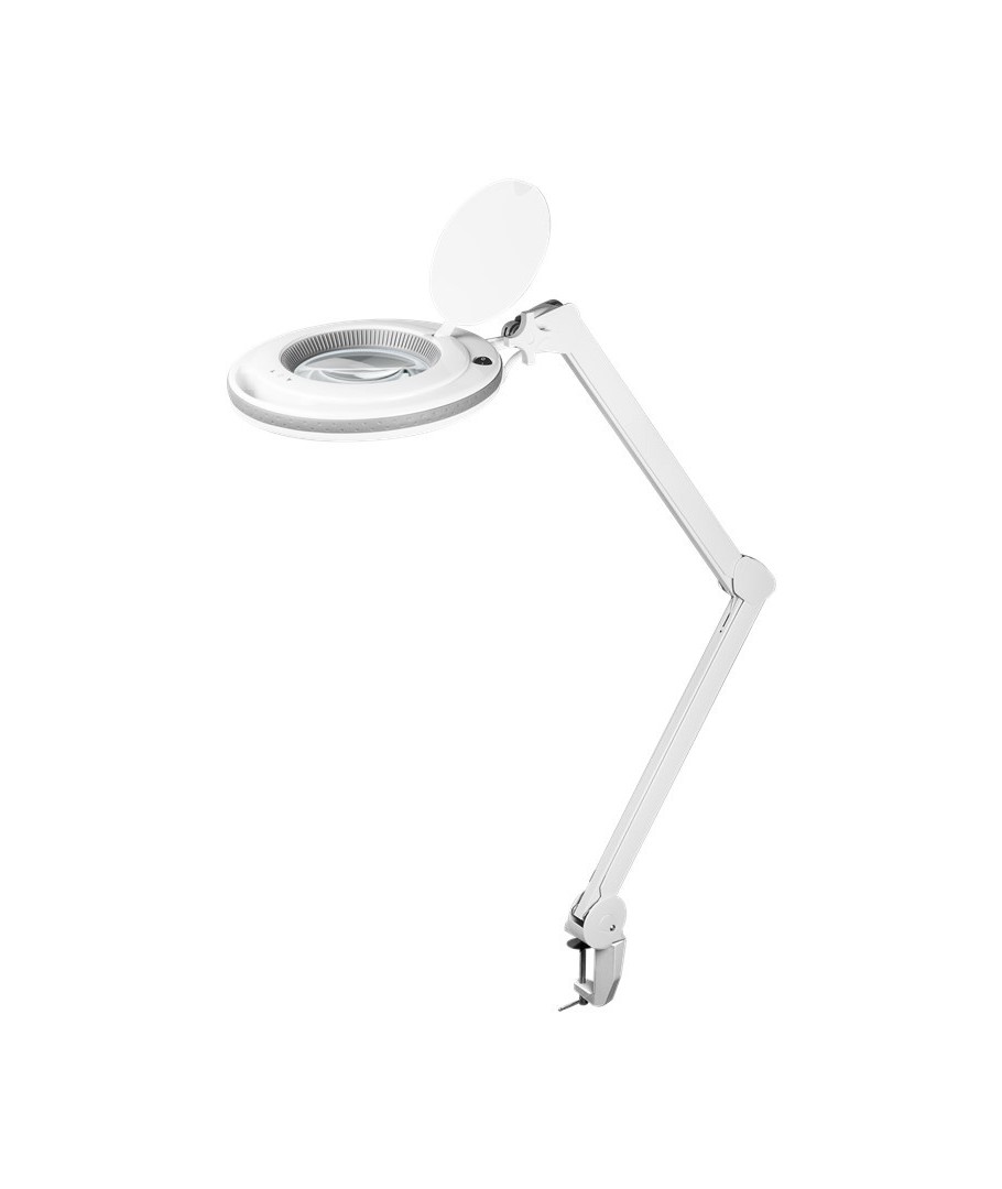 Upptäck en förstoringslampa utformad för att underlätta ditt arbete och ge en klar och tydlig syn på detaljer. Med sin moderna och stilrena vita design passar denna lampa in i vilket arbetsrum som helst, oavsett om det är för professionellt eller hobbybruk.