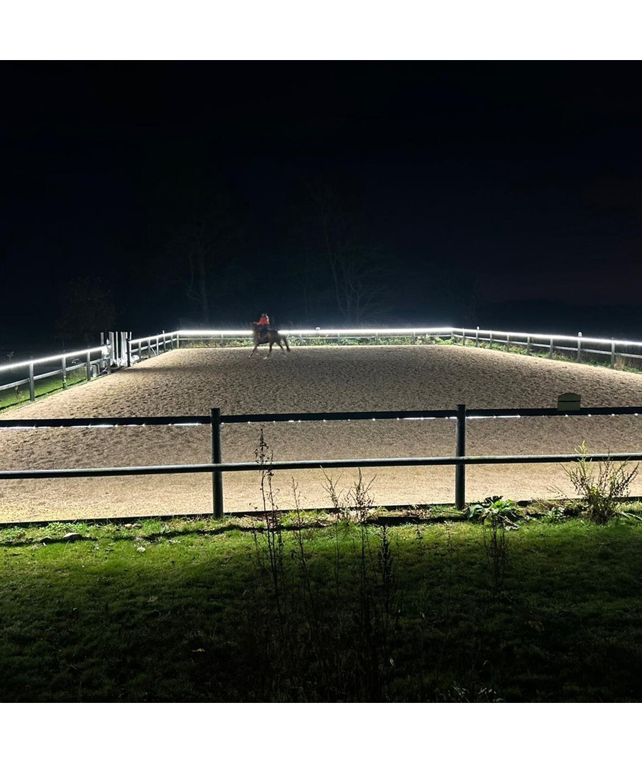 Förvandla din ridbana med denna mångsidiga och pålitliga LED-lösning som kombinerar energieffektivitet, hög ljuskvalitet och anpassningsbara ljusfärger.