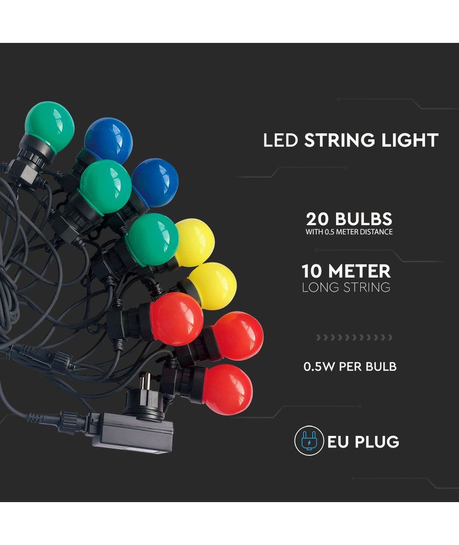 Den färgglada LED ljusslingan med 20 lampor ger liv och glädje till varje festligt tillfälle med ett spektrum av klara färger och flexibla användningsområden.