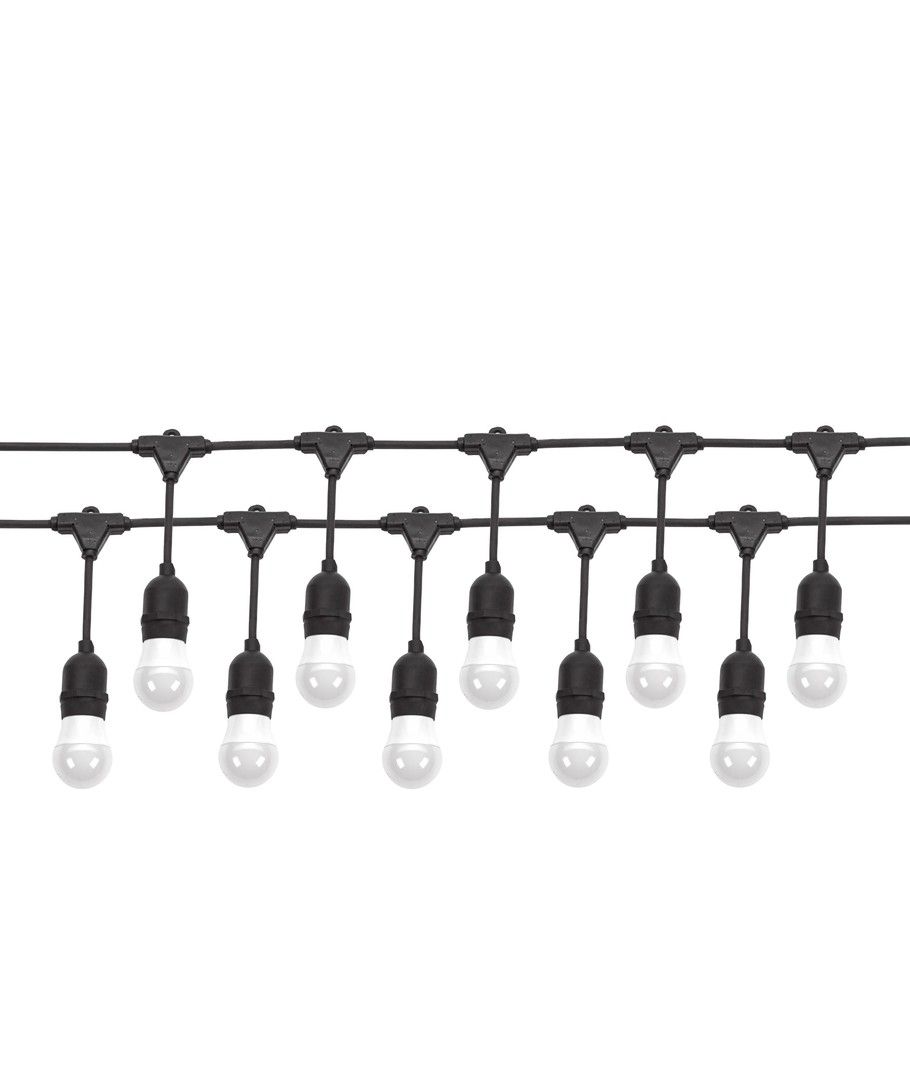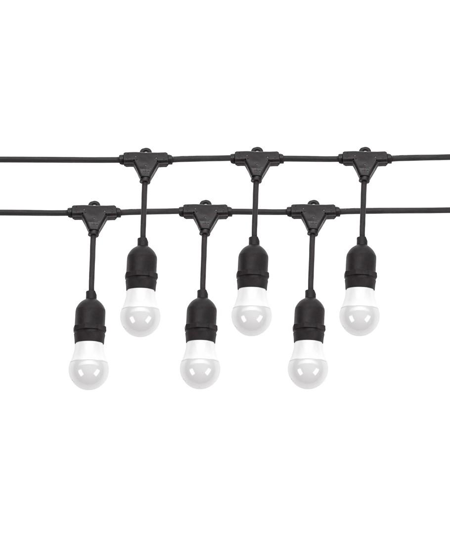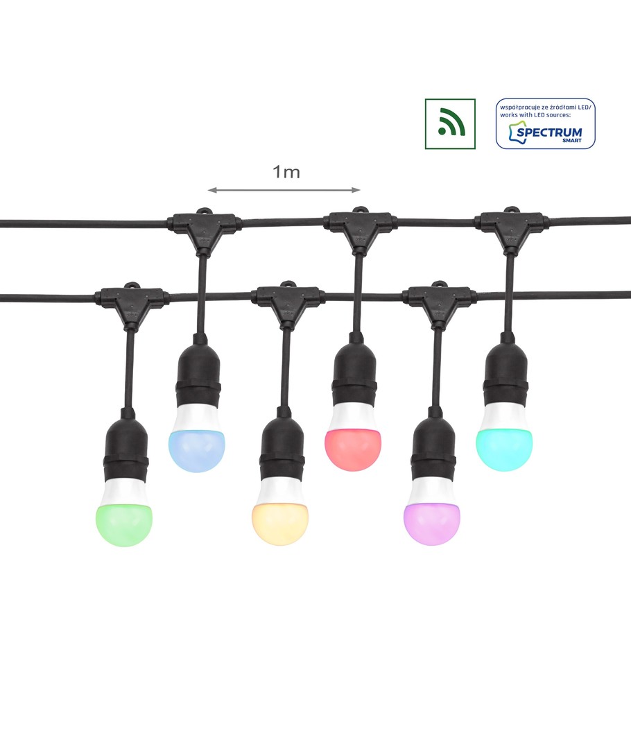 Skapa en stämningsfull atmosfär både inomhus och utomhus med vår Spectrum ljusslinga för 10 stycken E27-glödlampor. Denna 10 meter långa ljusslinga är IP44-klassad, vilket innebär att den kan användas utomhus utan problem.